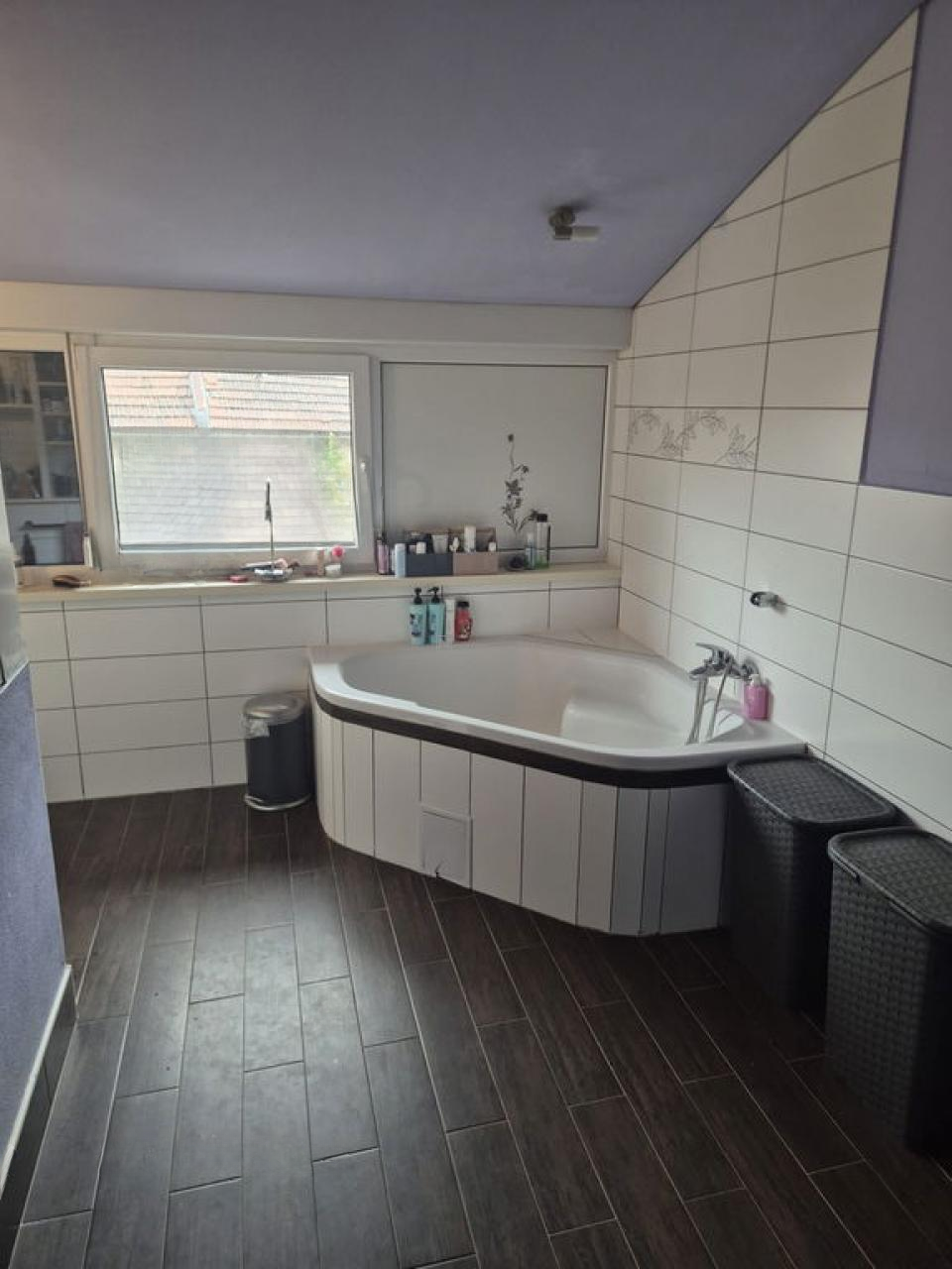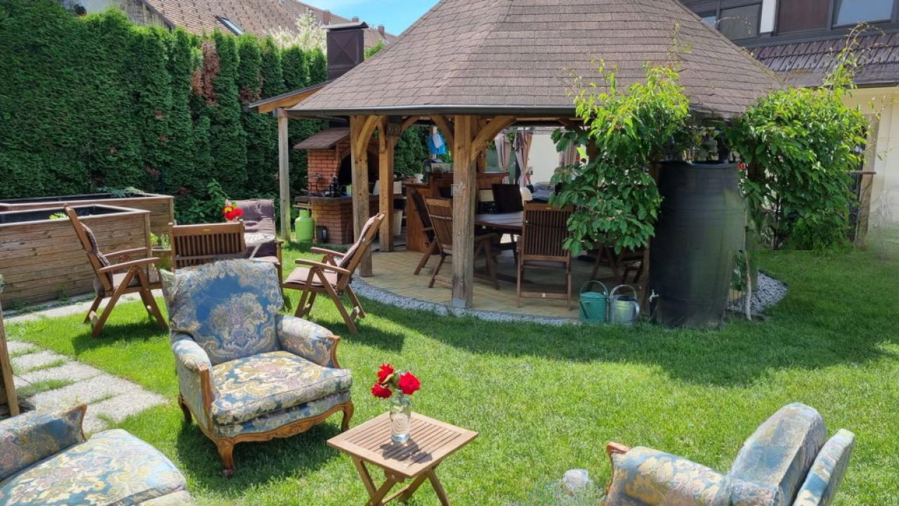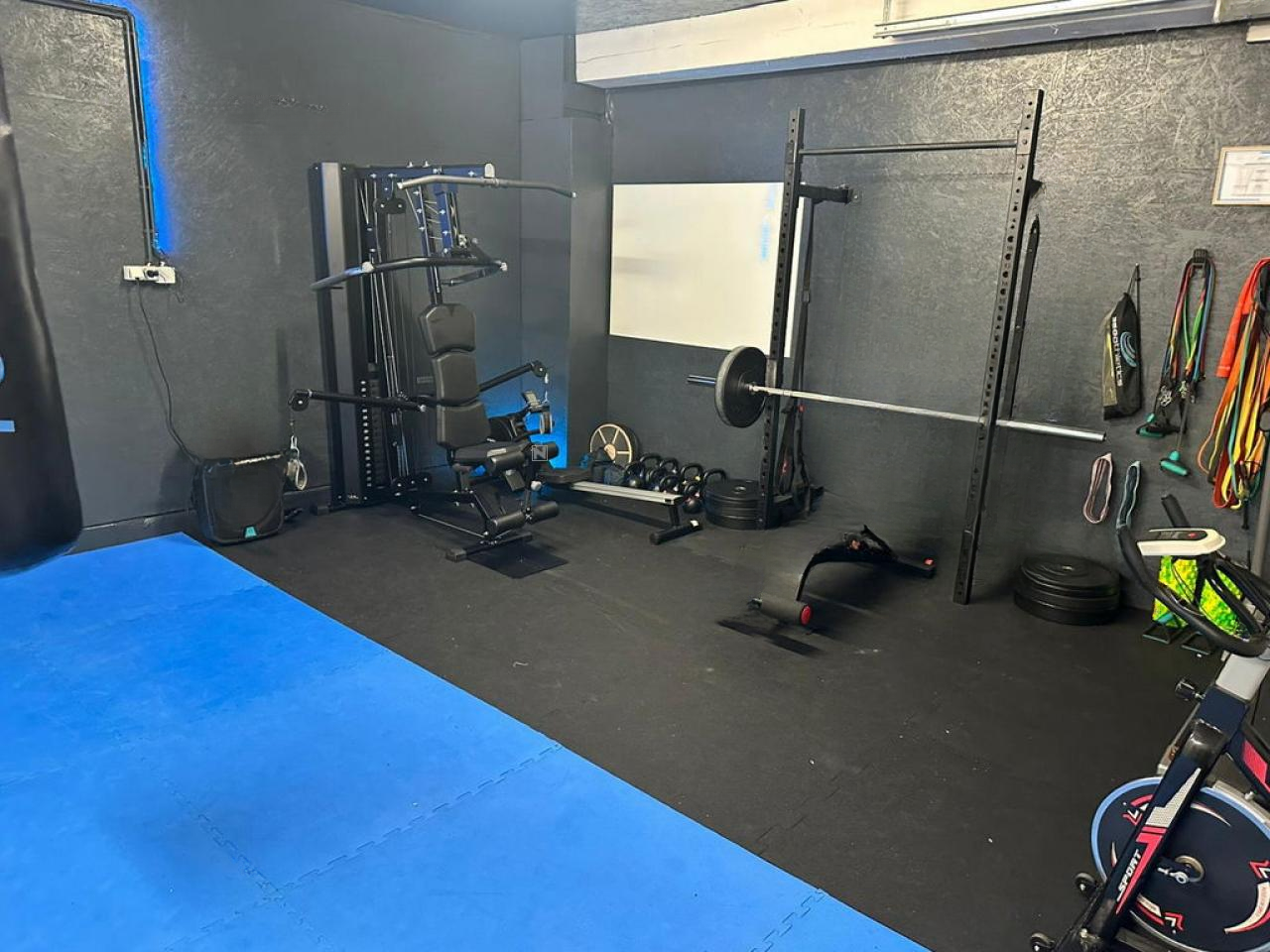 На верхнем этаже расположены три детские комнаты, главная спальня и просторная ванная комната с туалетом. Над гаражом, переоборудованным в фитнес-зал (площадью примерно 30 м²), находится полностью новое самостоятельное жилое помещение площадью около 35 м² с собственным входом и ограждённым участком сада, что обеспечивает полную приватность.