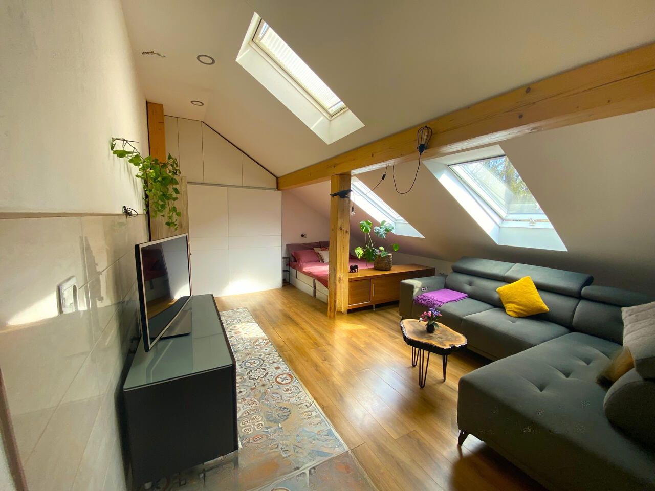 Жилой комплекс состоит из трех отдельных квартир с отдельными входами и доступом к общему двору и саду. Первый дом включает первый этаж площадью 56,7 м² и неосвоенный чердак площадью 73,4 м². Второй дом предлагает первый этаж 37,65 м² и мансарду аналогичной площади. Все квартиры были капитально обновлены в период с 2010 до 2020 года, включая обновление крыши, фасада, окон и всех инженерных сетей.