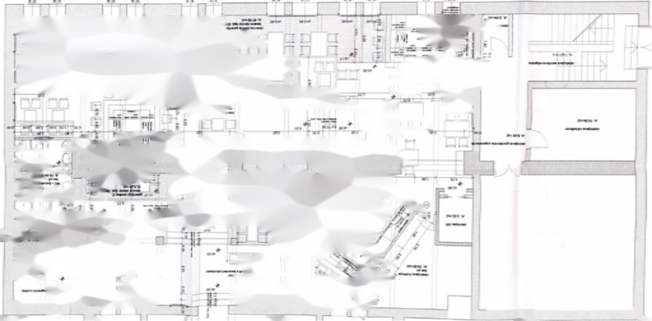 Архитектурные особенности помещения подразумевают ограниченное количество естественного света, что позволяет создать уникальную атмосферу, подходящую для различных типов бизнеса. Внутреннее пространство предусматривает большой центральный зал, кухню, санитарные узлы для гостей, а также служебные помещения.
