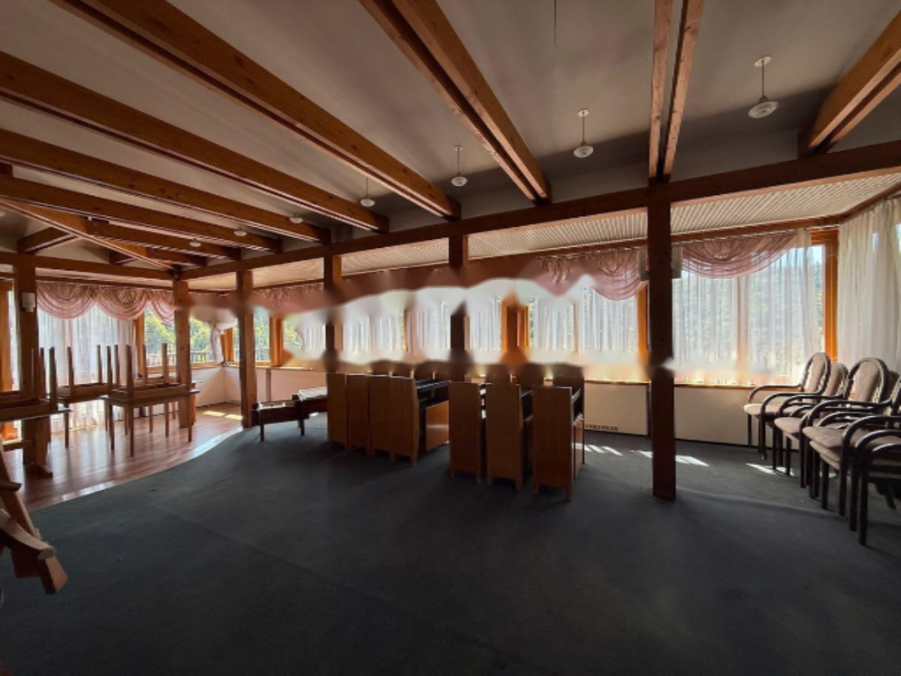 Архитектурные особенности комплекса подчеркиваются наличием просторных террас и зоны с каминоструктурой. Все помещения, включая номера, рестораны и кухни, полностью оборудованы. Здание оснащено центральным отоплением на нефтяном топливе, а также конвекторами в ресторане для подачи свежего воздуха. Установлена современная сигнализация для обеспечения безопасности.