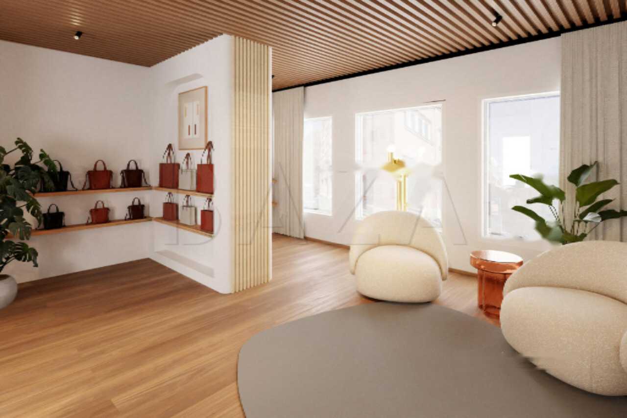Архитектурные особенности включают собственный вход непосредственно с пешеходной зоны, обеспечивая легкий доступ и отличную видимость, благодаря витринному окну для бесплатного рекламы.