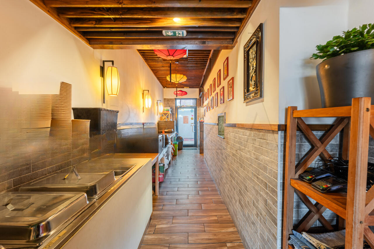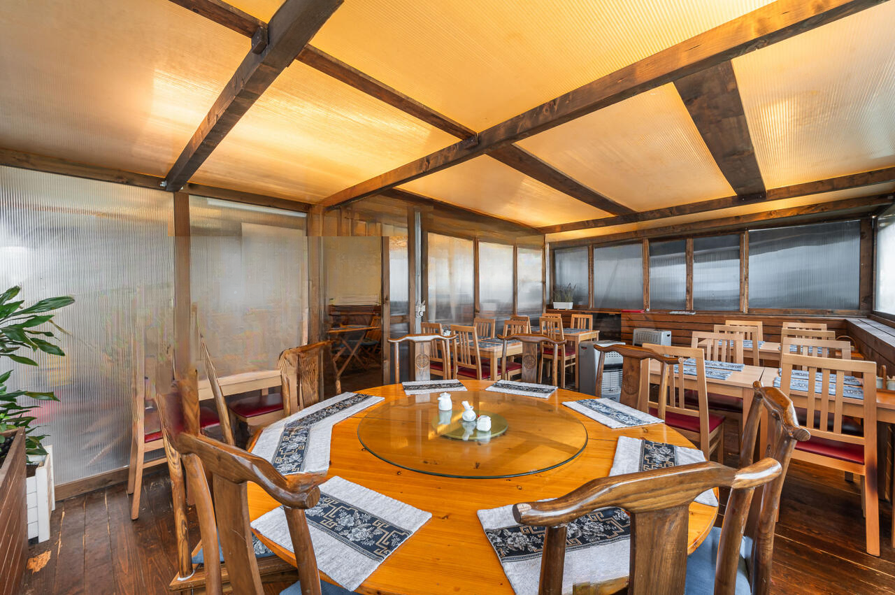 На первом этаже расположена кухня, барная стойка, туалет и обеденная зона. Кроме того, перед рестораном установлена крытая беседка с арендуемыми у города столами.