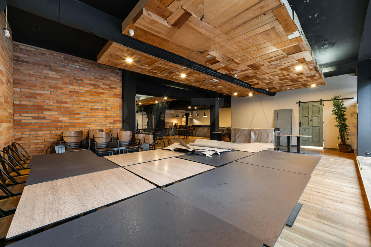 Объект включает в себя просторный зал для гостей, бар, кухню, грузовой лифт, складское помещение и санитарные узлы. В 2009 году были обновлены инженерные коммуникации, а за последние два года проведен ремонт кухни, заменены напольные покрытия и мебель. Объект оснащен современной системой вентиляции, отопление подключено к городскому теплоснабжению. Помещение полностью оборудовано и за счет работоспособных устройств готово для немедленного начала эксплуатации в сфере общепита.