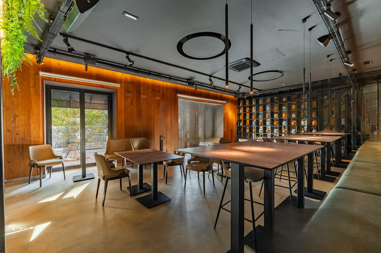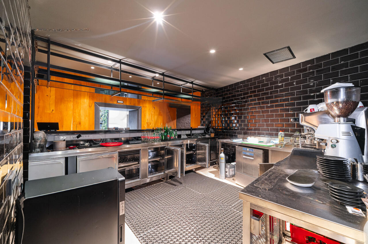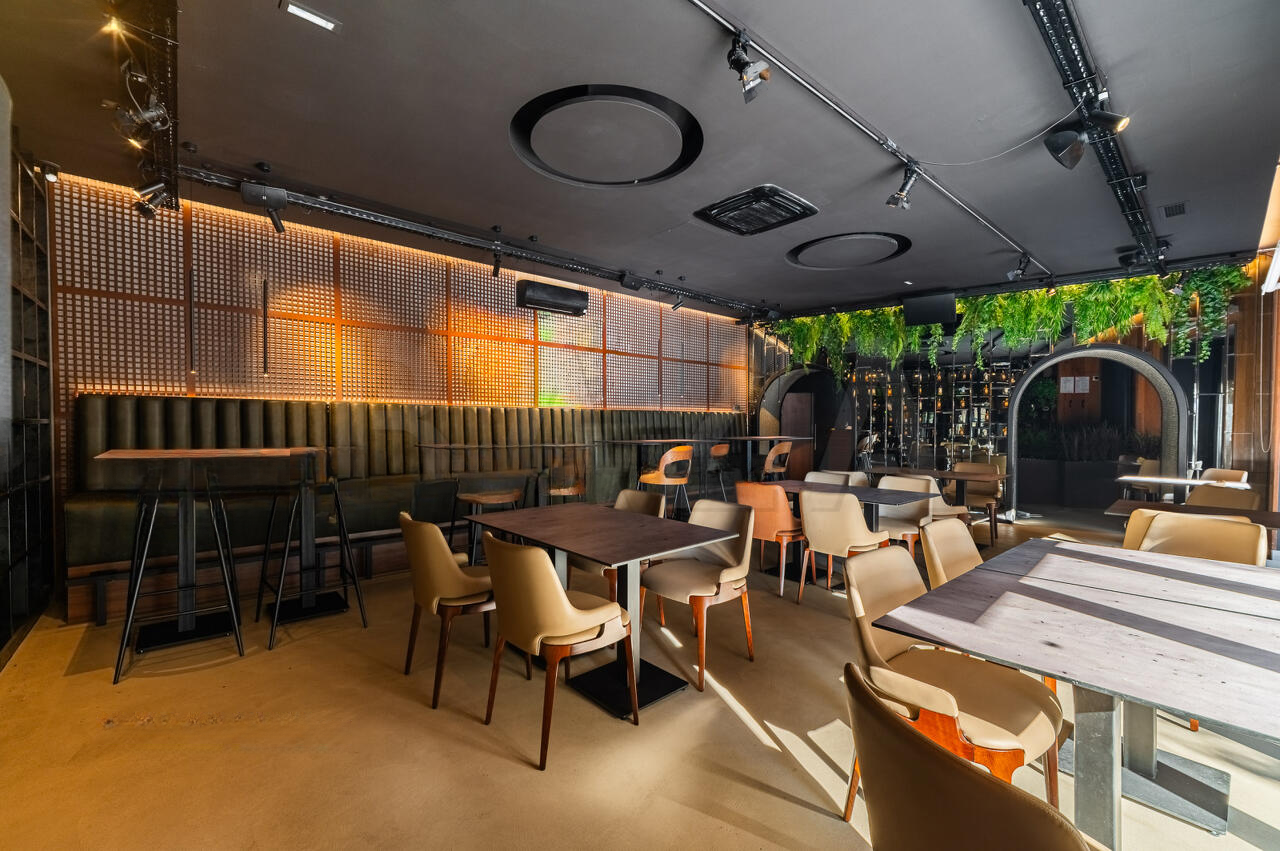 Здание выделяется удачным архитектурным решением, предоставляющим возможность использования как внутреннего зала, так и внешней террасы. Терраса оборудована системой раздвижных окон и принадлежит муниципалитету. Внутреннее пространство включает в себя несколько помещений: два зала с посадочными местами, бар, офисные помещения, санитарные узлы и технические пространства на цокольном этаже, включающие кухню, морозильные камеры и другие необходимые для ведения бизнеса помещения. Особенностью является наличие систем вентиляции и безопасности.