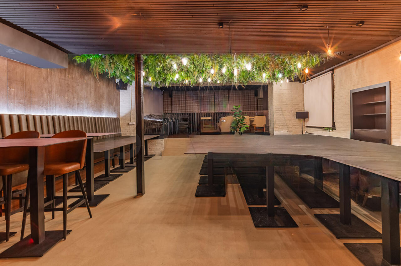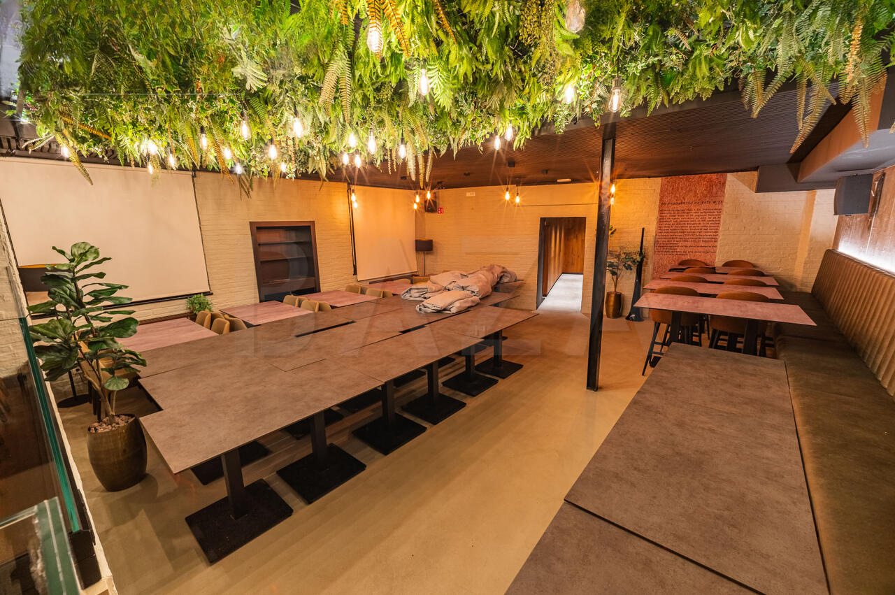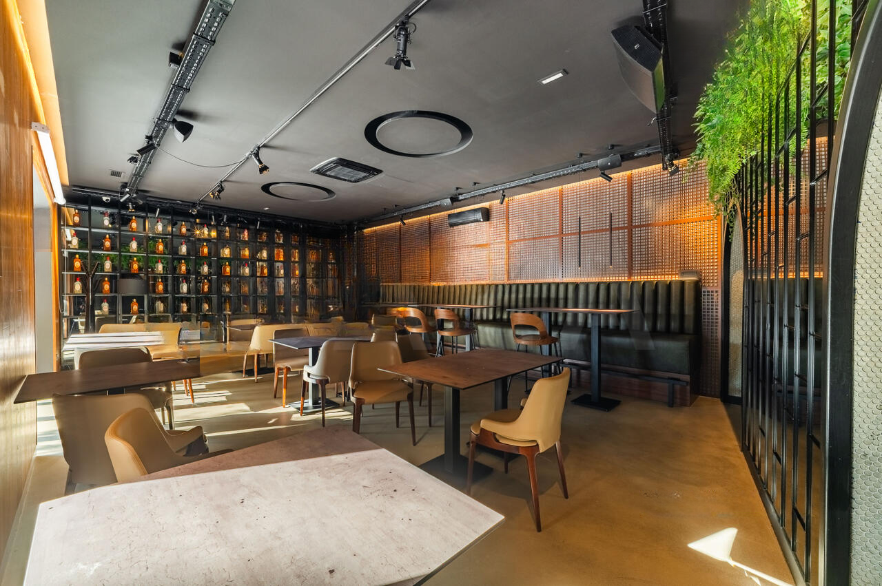 Здание выделяется удачным архитектурным решением, предоставляющим возможность использования как внутреннего зала, так и внешней террасы. Терраса оборудована системой раздвижных окон и принадлежит муниципалитету. Внутреннее пространство включает в себя несколько помещений: два зала с посадочными местами, бар, офисные помещения, санитарные узлы и технические пространства на цокольном этаже, включающие кухню, морозильные камеры и другие необходимые для ведения бизнеса помещения. Особенностью является наличие систем вентиляции и безопасности.