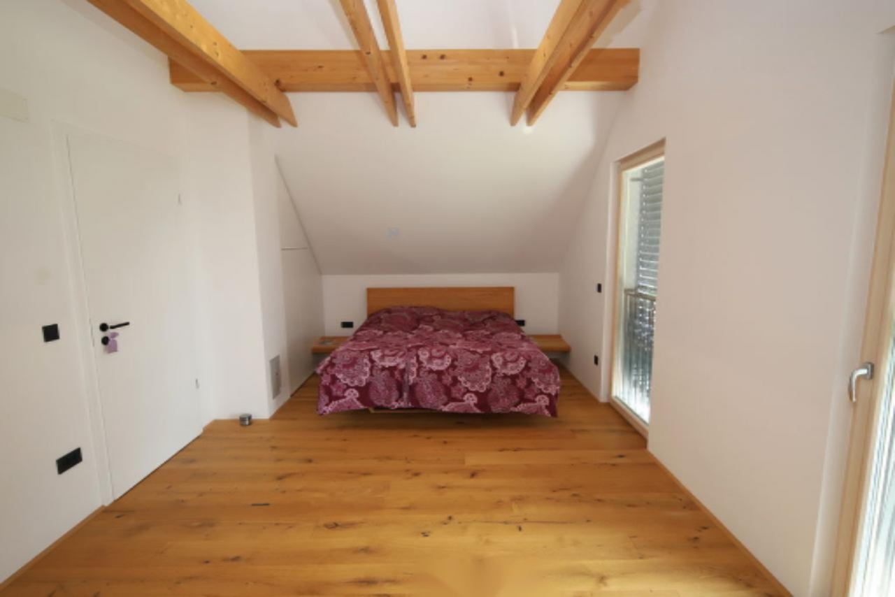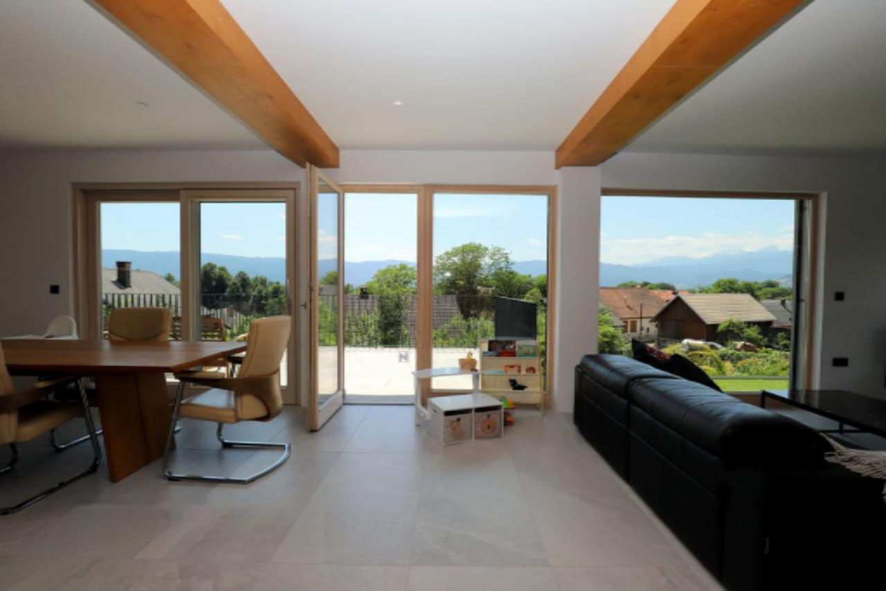 Дом находится в тупиковой улице, что гарантирует спокойствие и уединенность. Позиция на возвышенности позволяет любоваться великолепными видами на Еловицу и Юлийские Альпы с Триглавом, а обращенные к югу жилые помещения наполнены солнечным светом в течение всего дня. Построенный в 2018 году с применением качественных современных материалов, дом отлично изолирован, оснащен системой напольного отопления и отапливается тепловым насосом, что обеспечивает низкие эксплуатационные расходы.