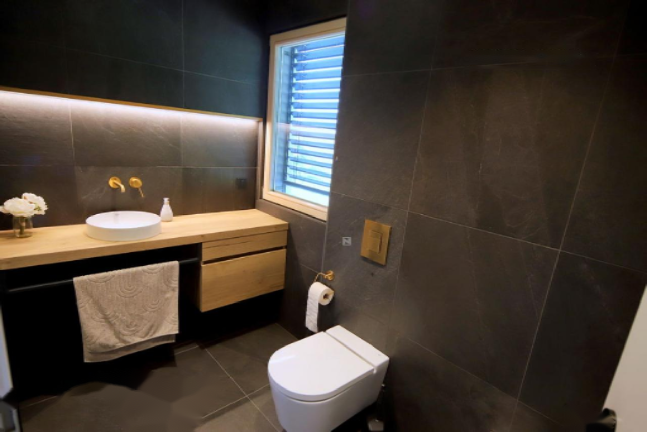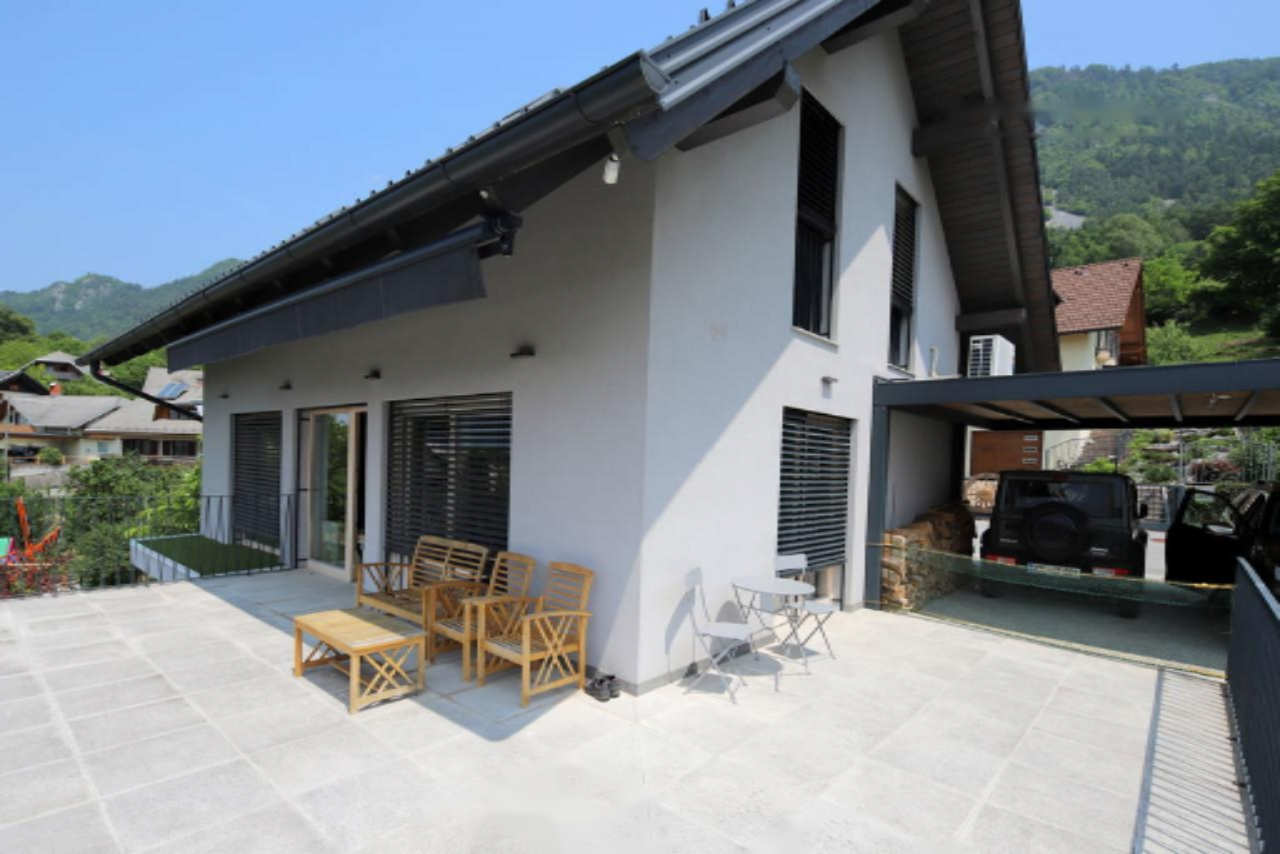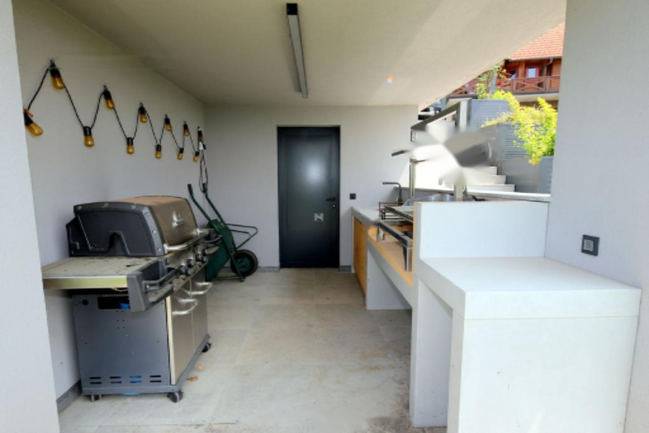 Дом полностью меблирован качественной мебелью, изготовленной на заказ, с акцентом на практичность. Парковка рассчитана на два автомобиля под навесом, а также имеются дополнительные места для двух машин на участке.