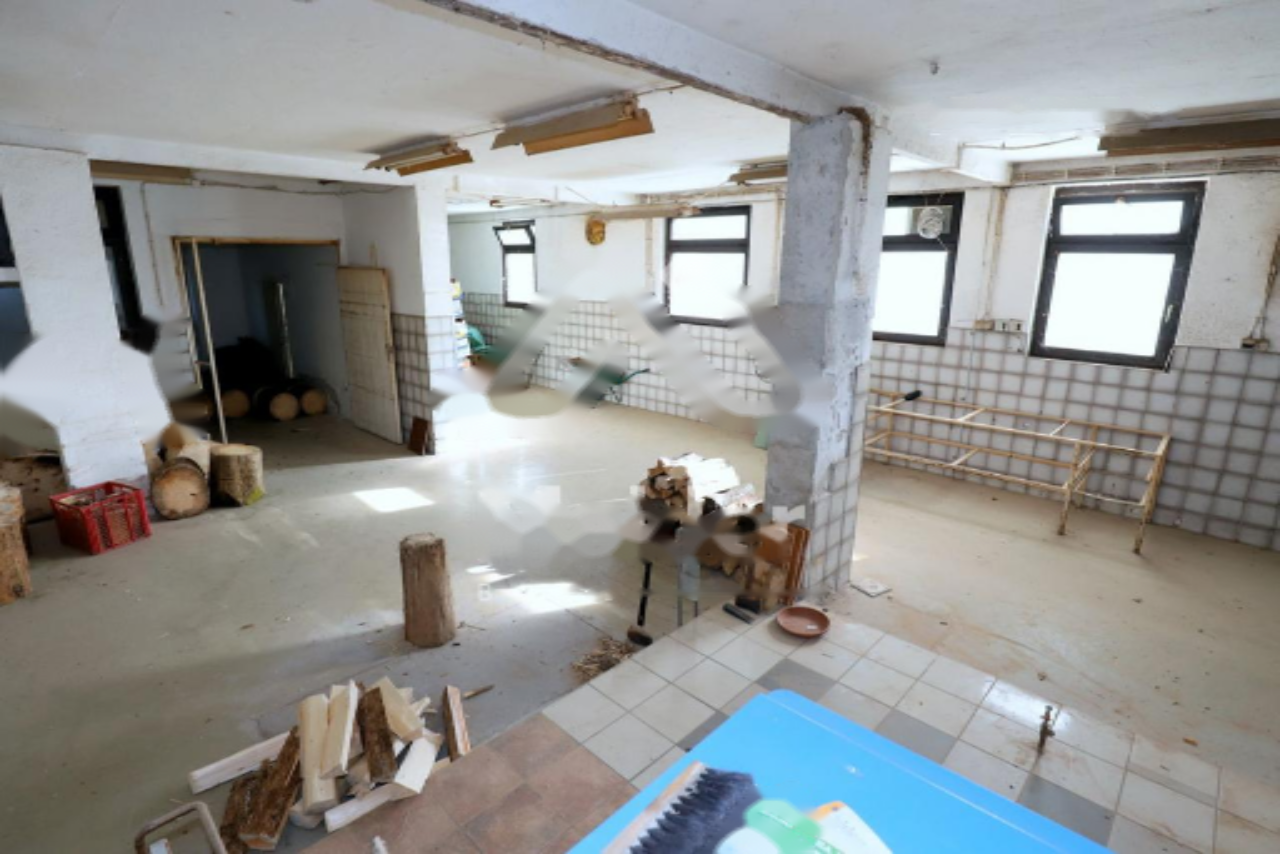 К дому примыкает мастерская бывшей пекарни и кондитерской площадью 220 м², соединенная с домом через подвал. На территории имеется парковка на два автомобиля под навесом, ухоженный ботанический сад с двумя прудами, теплица и деревянное строение, ранее служившее вольером для птиц. Земельный участок разделен на стройплощадь, сельскохозяйственную землю и лесной массив, что в прошлом использовалось для разведения лошадей и организации мероприятий.