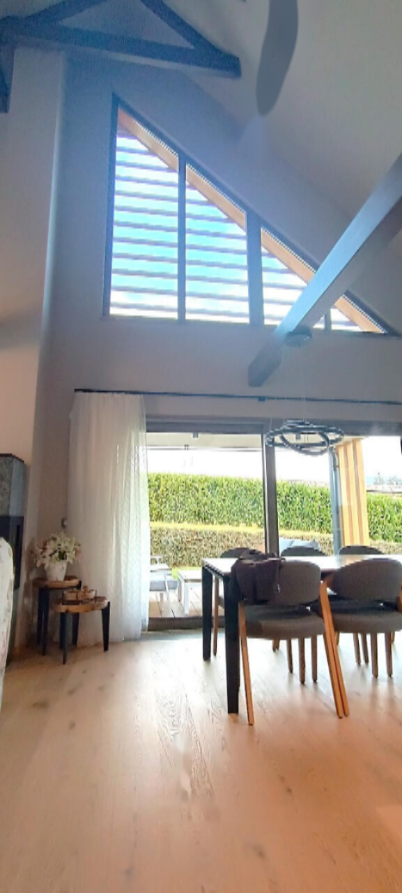 При входе сразу ощущается гармония пространства. Просторная гостиная с камином и панорамными окнами наполнена солнечным светом. Кухня и столовая плавно переходят в крытую террасу, создавая отличное место для утреннего кофе с видом на горы или вечернего бокала вина. ☕