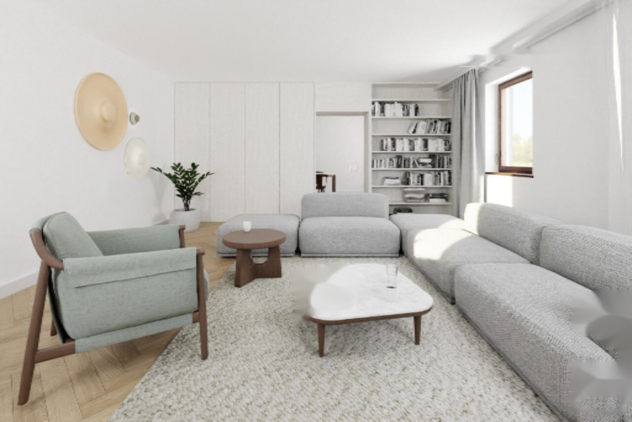 На первом этаже находятся две спальни, просторная гостиная, кухня с обеденной зоной, ванная комната, кладовая, котельная и дополнительная комната, которая может использоваться как библиотека. Второй этаж включает три спальни, мастерскую, коридор с лестницей и выходом на балкон, а также чердак, который можно адаптировать под свои нужды.
