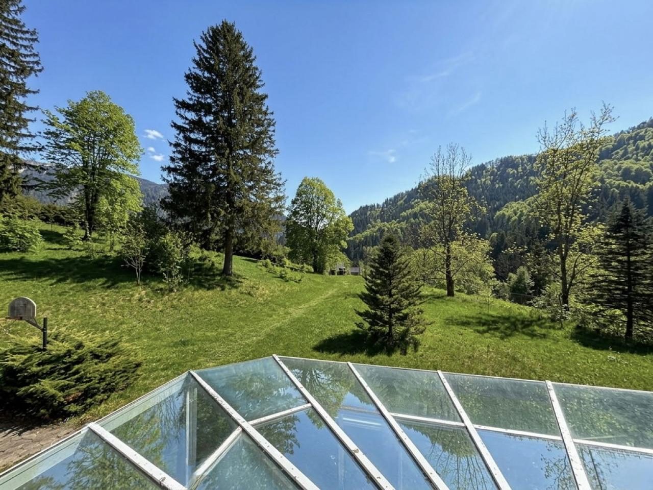 Обширная территория включает ухоженные луга и частично лес, предлагая разнообразные возможности для отдыха, рекреации или развития дополнительных объектов. Несмотря на свое уединенное расположение, недвижимость хорошо соединена с крупными городами, такими как Крань, Блед и Любляна, что обеспечивает быстрый доступ ко всем необходимым услугам.