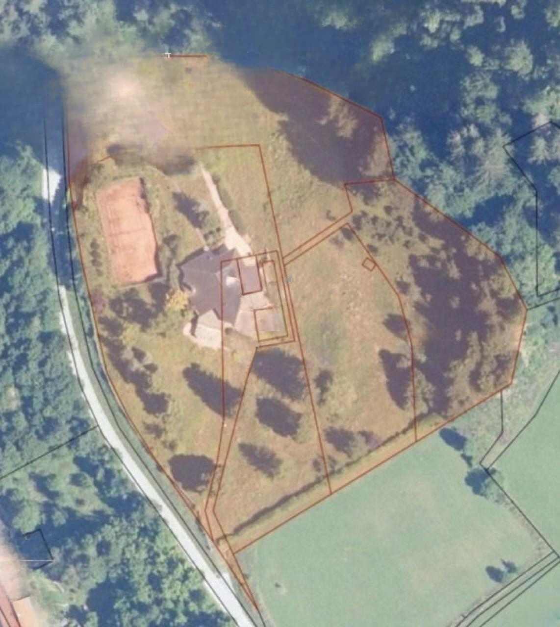 Вилла располагает просторными гостевыми комнатами и функционально спроектированной кухней. На участке также имеется вспомогательное строение, предлагающее дополнительные пространства для жилья или хранения. Спортивные энтузиасты оценят наличие теннисного корта, обеспечивающего возможность активного отдыха и общения в полной приватности.