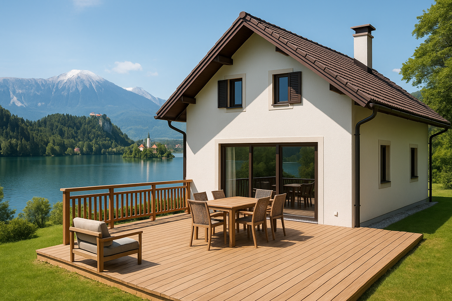 В живописном районе Блед, на Добряве, предлагается просторный дом площадью 240 м² на участке в 1600 м². Дом включает первый этаж, второй этаж и мансарду. Возведен в 1980 году.