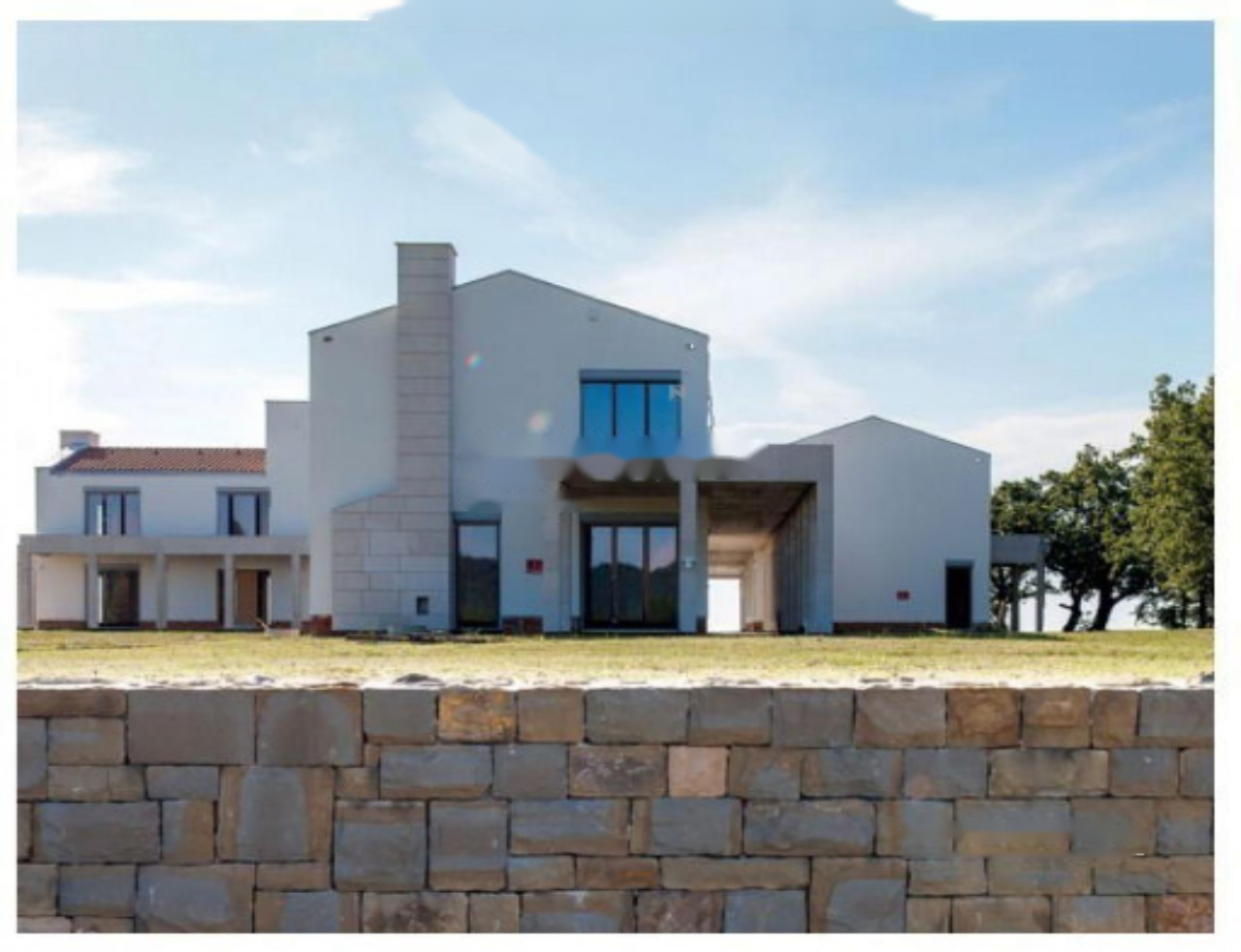 На территории расположены три самостоятельных дома, находящихся на четвёртой стадии строительства (несущая конструкция, фасад, крыша и окна) с общей полезной площадью 1.368 м2 (1.744 м2 брутто). Дома соединены аркадными коридорами с наружными водными поверхностями и одним большим бассейном . Внутреннее пространство домов позволяет завершить отделку в соответствии с представлениями нового владельца.