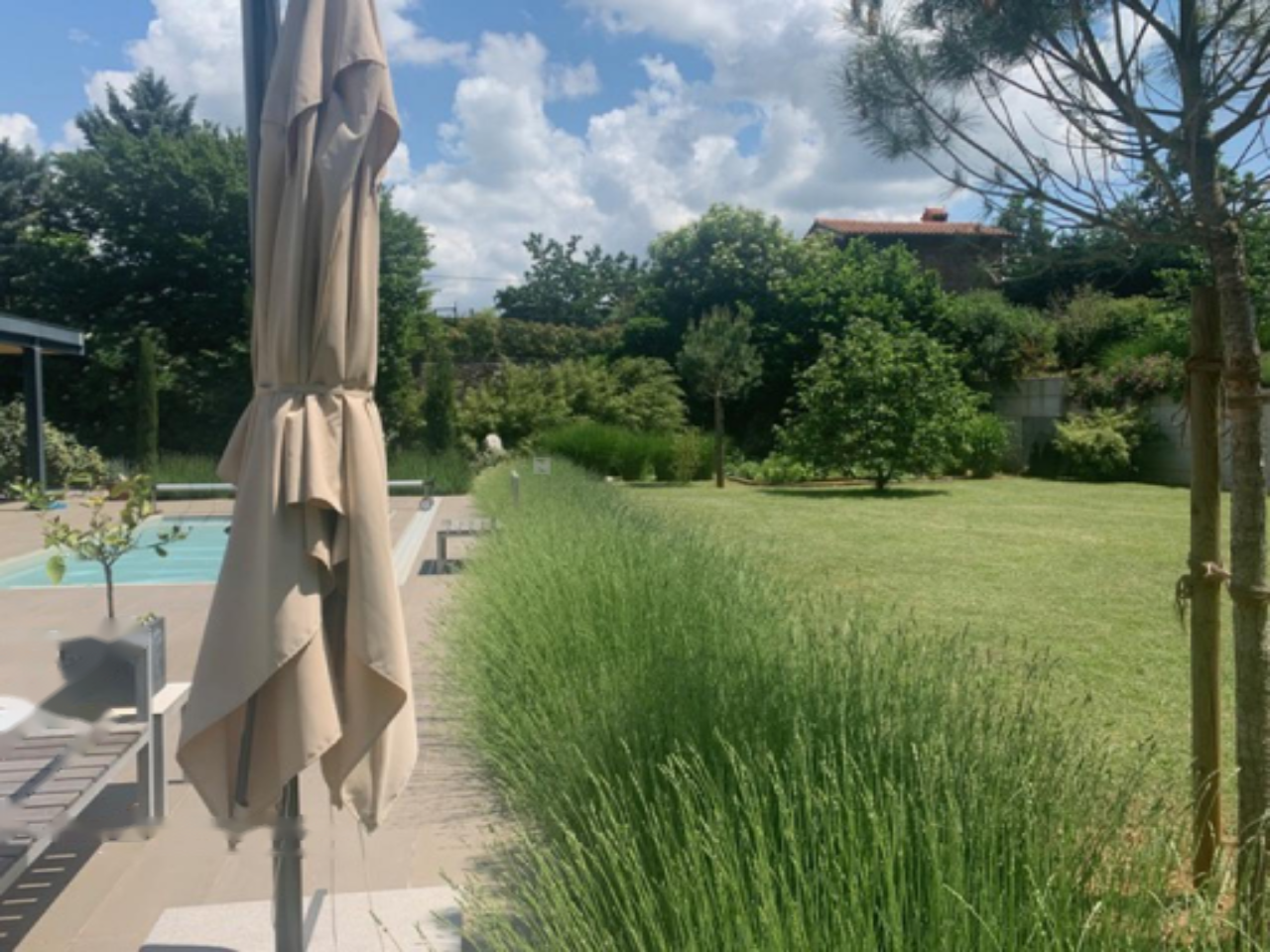 Представляем вашему вниманию современную виллу в живописной деревне Крас, между Штаньелом и Томаем. Этот превосходный объект, построенный в 2016 году и обновленный в 2019 году, расположен на участке площадью 2 211 м².