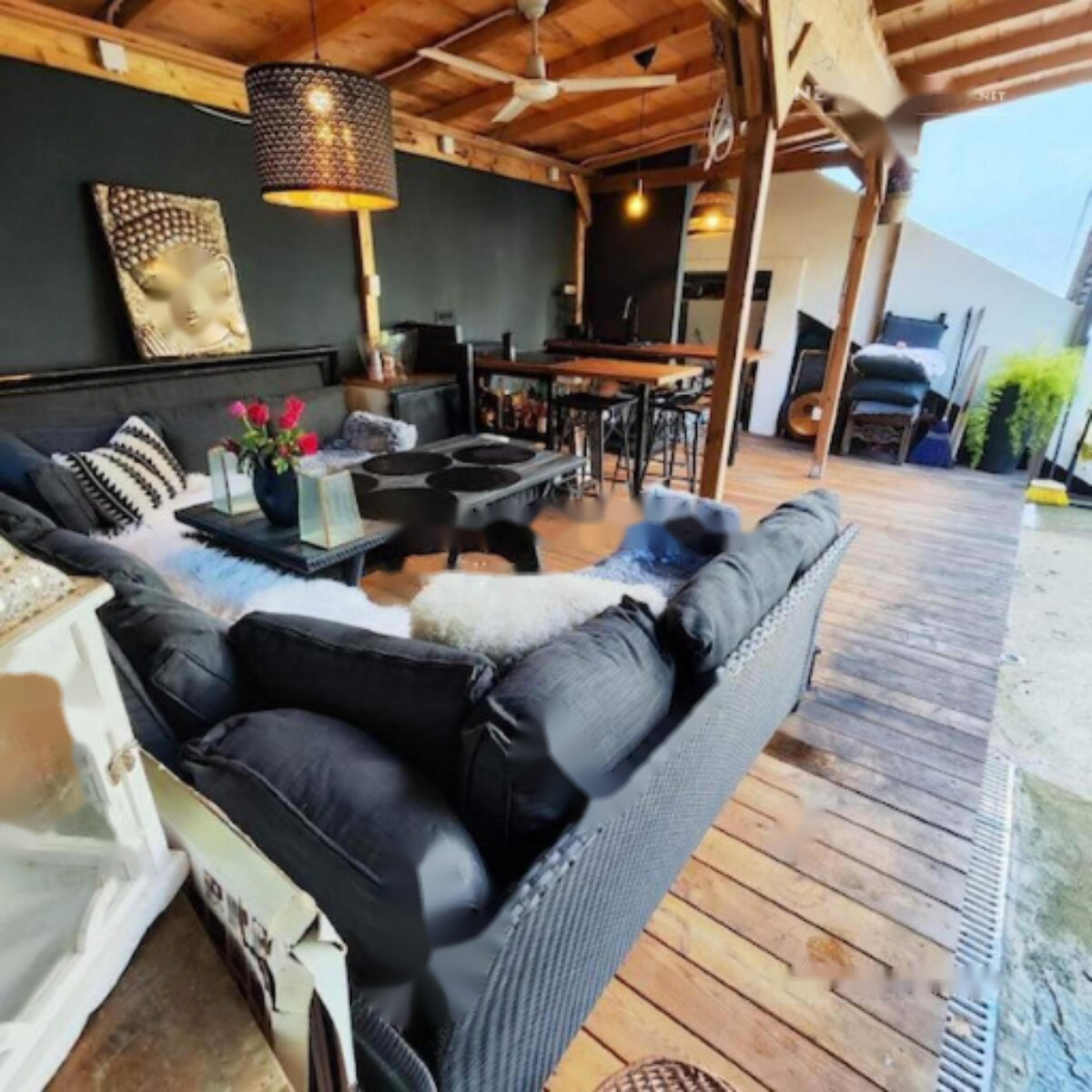 Вилла оснащена новыми электрическими и водопроводными системами, а также обновленными ванными комнатами. Для отопления используется тепловой насос, а кондиционеры обеспечивают прохладу летом. Все адаптации завершены в 2021 году. Земельный участок размером 311 м² полностью огорожен. Здесь размещена просторная летняя кухня из сибирской лиственницы, вдохновляющая на приготовление кулинарных шедевров. В саду предлагается естественная тень от высоких деревьев и роскошных пальм, а вечером вся территория изящно подсвечена. Сад обильно засажен средиземноморской растительностью, цветами и живыми изгородями.