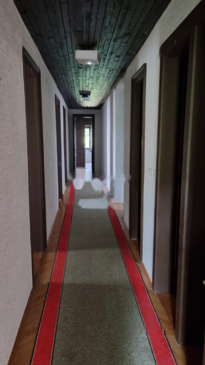 На первом этаже расположены три просторные комнаты, вмещающие около 12 спальных мест, а также кухня-столовая с выходом на террасу, которая соединяет вас с зелёным лесом. Здесь также имеются общие санузлы с душем для мужчин и женщин. Второй этаж дома радует четырьмя большими и одной небольшой комнатой, предлагающими прекрасный вид на море, и отдельными санузлами для мужчин и женщин. В комнатах настелен качественный паркет, и сохраняется деревянная отделка потолков.