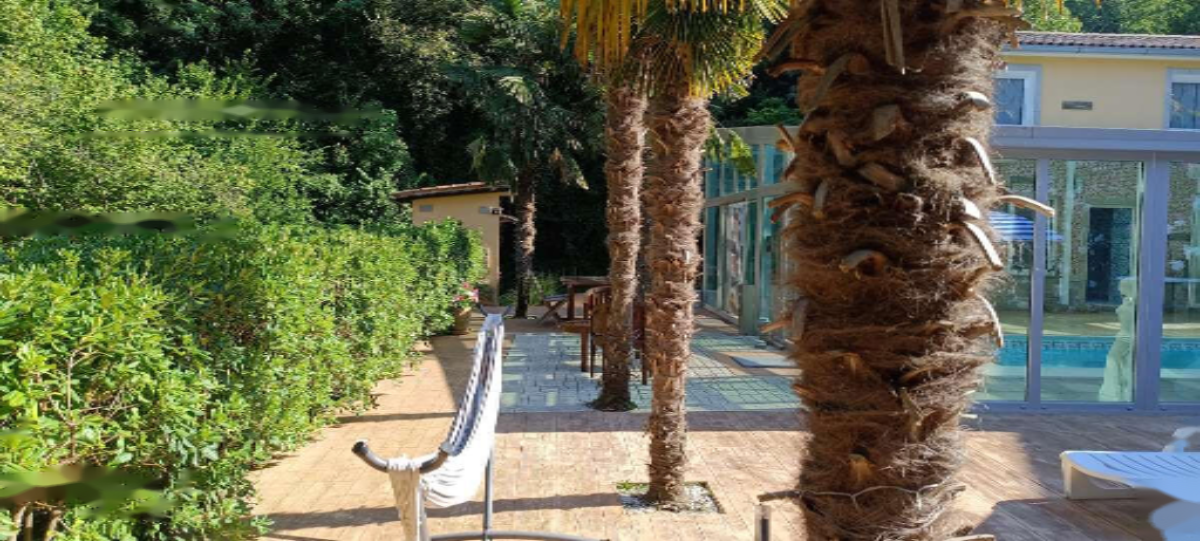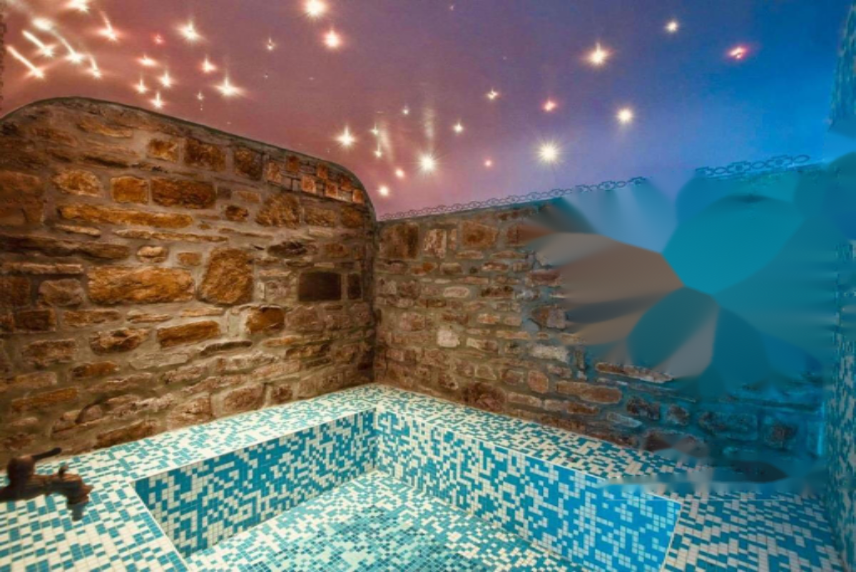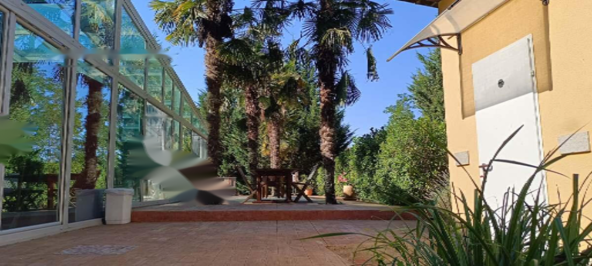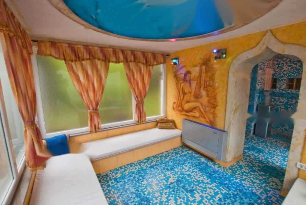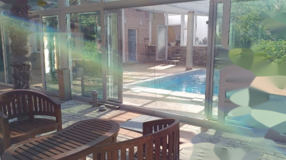 Особенностью данного объекта является крытый бассейн с зоной отдыха, включающей барную стойку, турецкую баню, небольшой бассейн, душ и туалет. Вокруг бассейна раскинулась просторная терраса с шезлонгами, зонтиками, креслами, гамаком и обеденной зоной. На территории также имеется тенистая лужайка с зоной для барбекю и летней кухней с грилем.