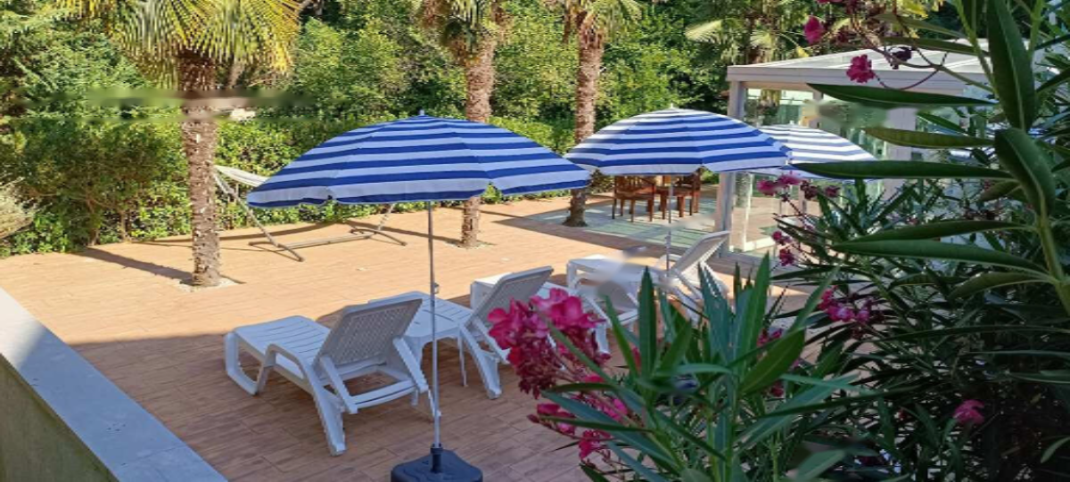 Данный двухэтажный дом, возведенный в 1989 году и обновленный в 2022 году, включает в себя 5 отдельных апартаментов, размеры которых варьируются от 35 до 120 м². Апартаменты полностью меблированы и оборудованы всеми необходимыми современными удобствами, включая телевизор, кондиционер, кухню и ванную комнату.