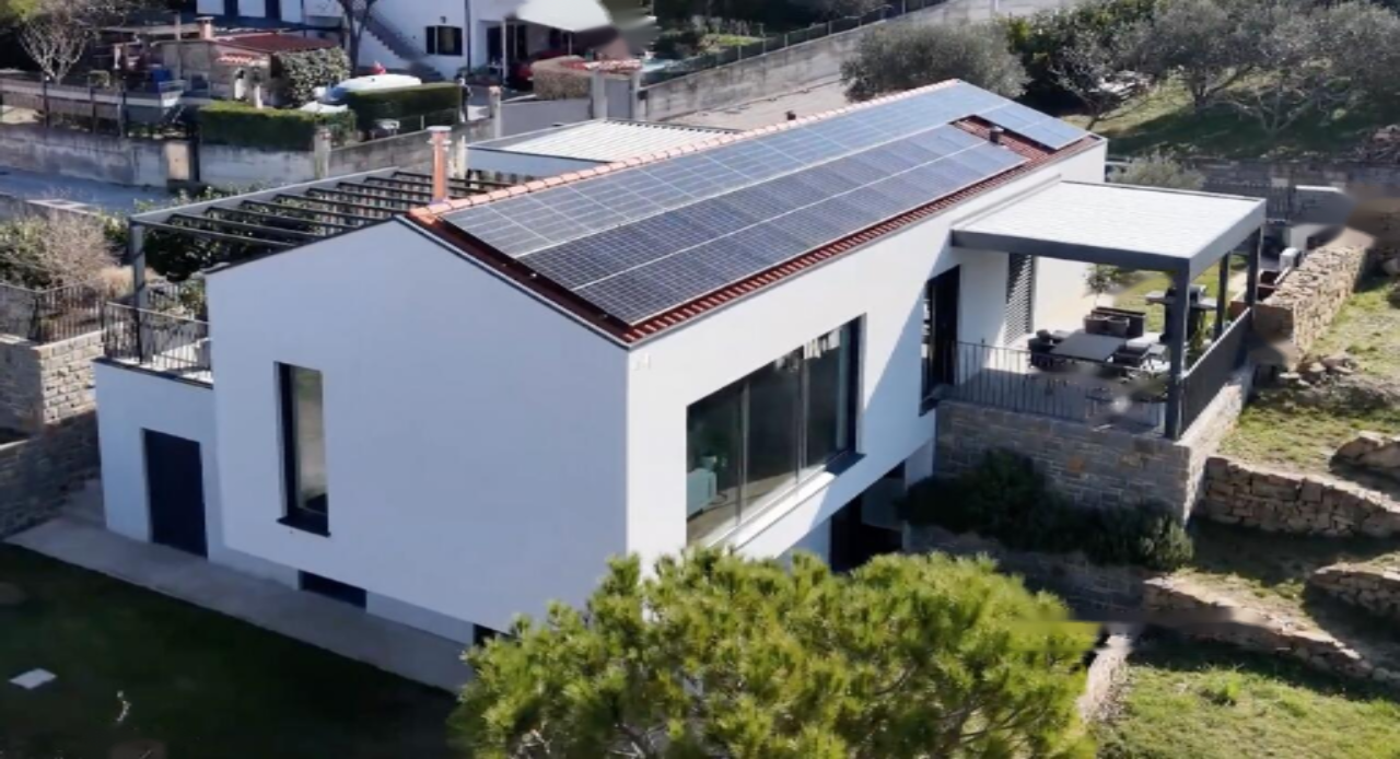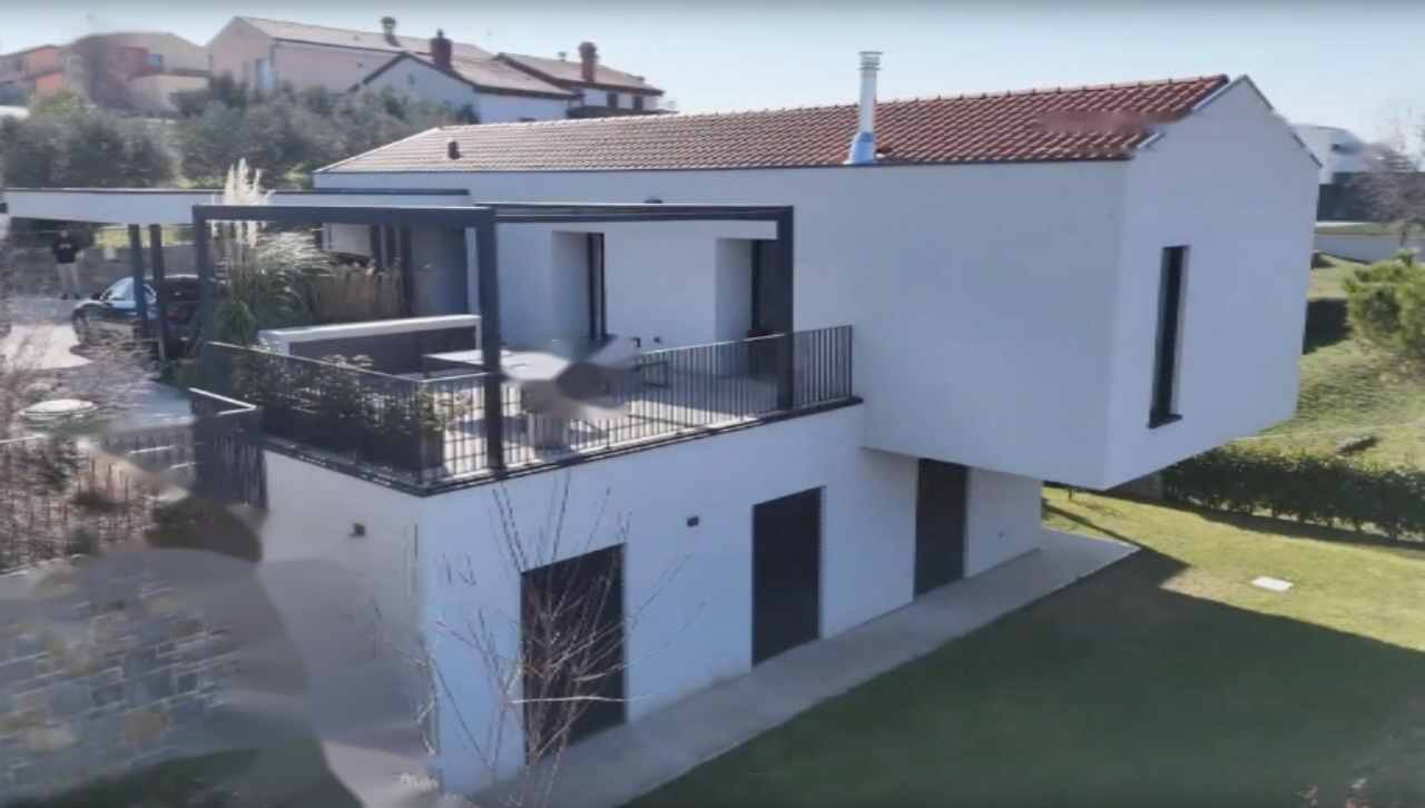 Для автомобилей предусмотрены гараж площадью 19,9 квадратных метра и три частные парковочные места. В доме установлено электрическое отопление с использованием теплового насоса и системой напольного отопления. Противовзломные двери и солнечная электростанция дополняют современный дизайн.