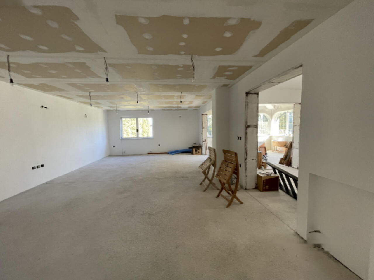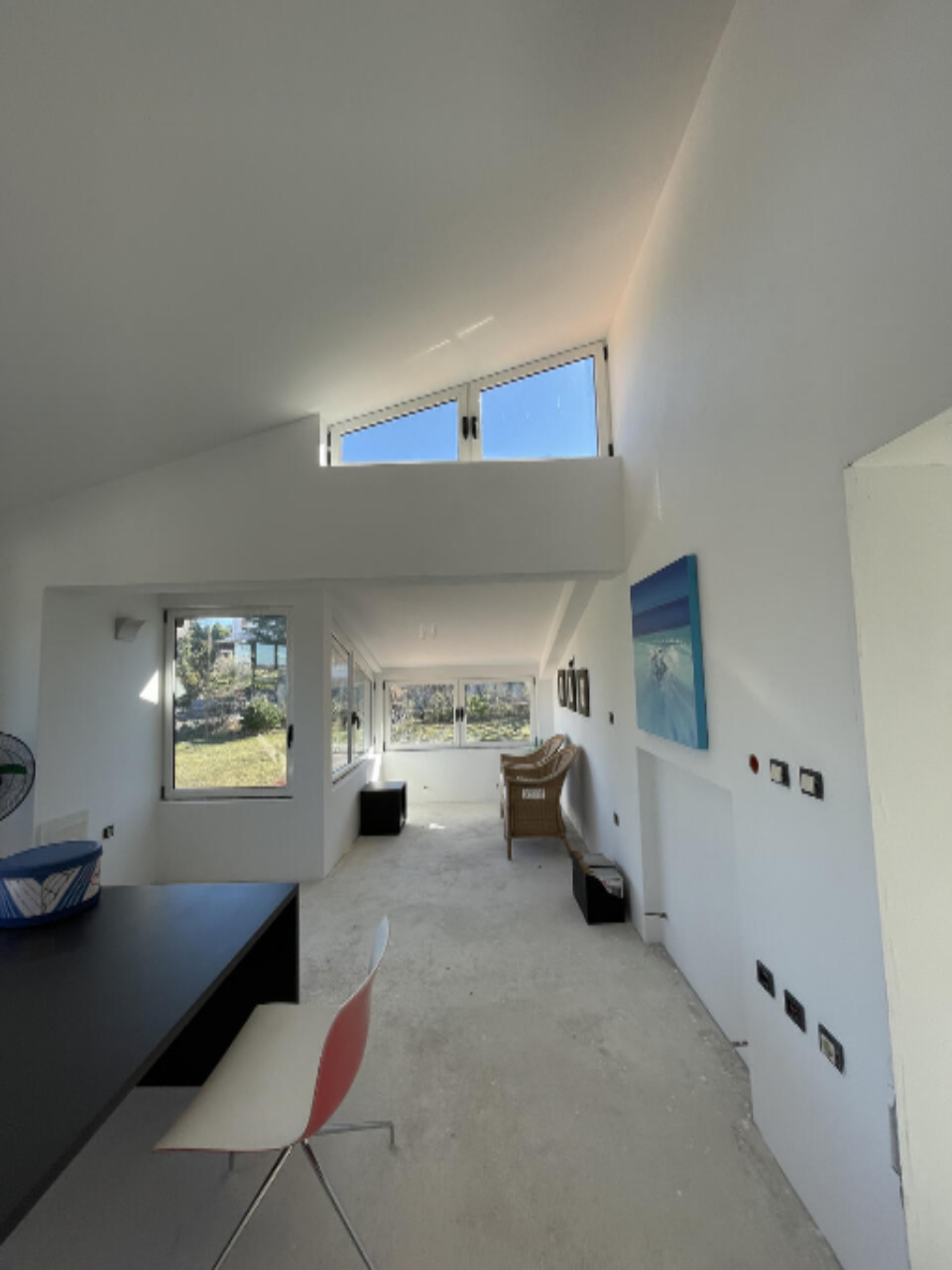Дом нуждается в доработке внутренней отделки, включая укладку напольных покрытий, установку систем отопления и охлаждения, внутренних дверей и покраску стен. Все коммуникации подведены, что упрощает процесс завершения строительства. На участке можно оборудовать внешний бассейн и организовать множество парковочных мест.