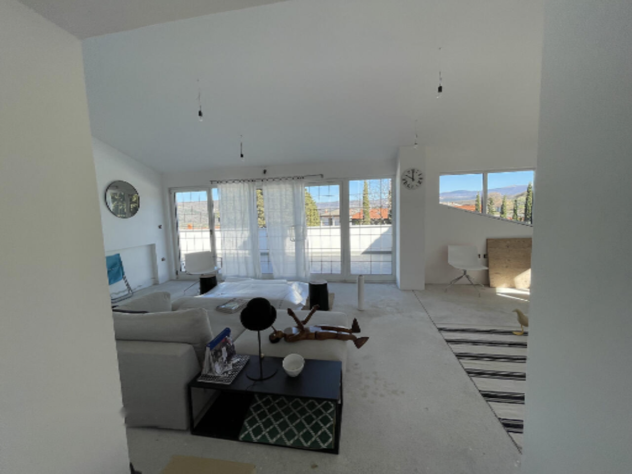 Предлагается просторный многоуровневый дом площадью 753 м² с живописным видом на Коперский залив и холм в Деканах, расположенный в идиллической деревне Чежарьи в Словенской Истрии. Дом построен в 1990 году на большом участке земли площадью 2 100 м² и окружен кипарисами. Территория включает в себя виллу с номерами и ботанический парк с пальмами, кипарисами, оливками, фигами, лавандой и олеандрами, что создаёт атмосферу Средиземноморья.