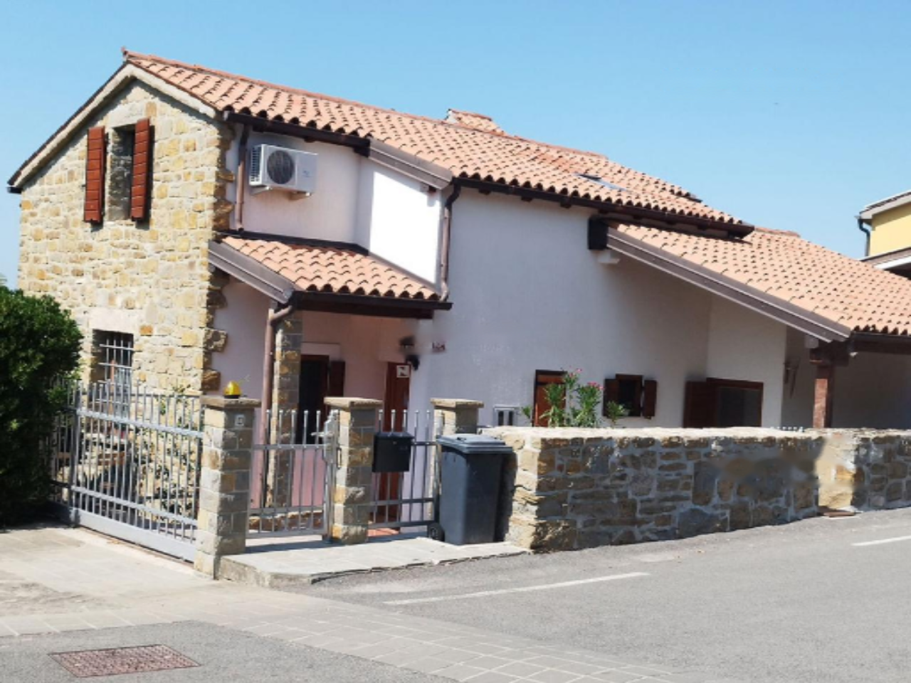 В доме есть четыре спальни с гардеробной, две ванные комнаты, просторная гостиная с обеденной зоной и кухней. На первом этаже имеется выход на террасу, откуда ведут ступени к саду и к подвальным помещениям. На втором этаже можно наслаждаться балконом с великолепным видом на истрийские холмы. На территории предусмотрено парковочное место для трёх автомобилей, что безусловно добавляет удобства. До моря всего 10 минут на автомобиле.