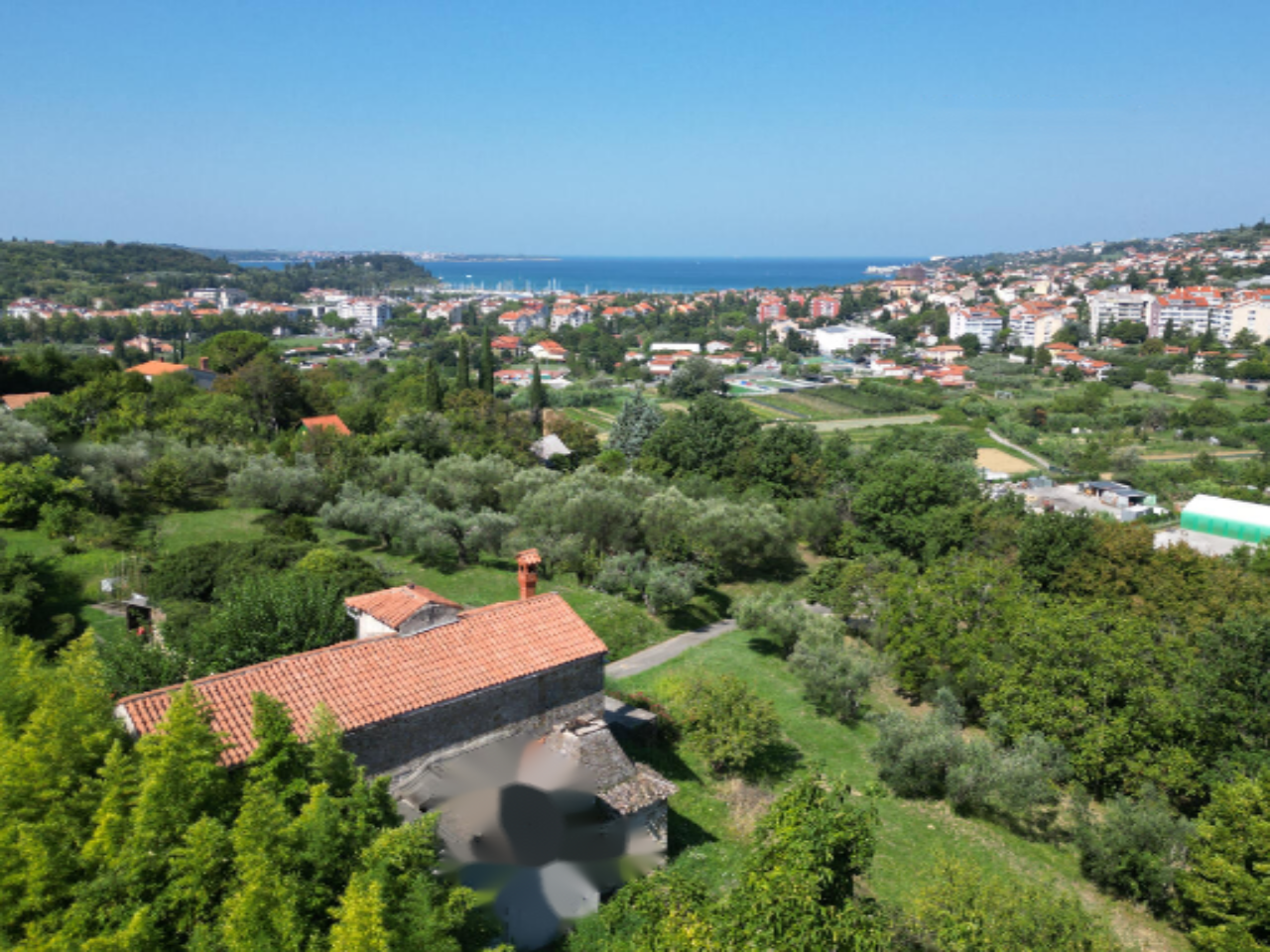 Дом окружен значительным участком площадью 698 м², а также земельными территориями (16 500 м²), арендуемыми на длительный срок от Общественной власти Пирана. Эти земли усажены великолепными старыми оливковыми деревьями, которые приносят богатый урожай.