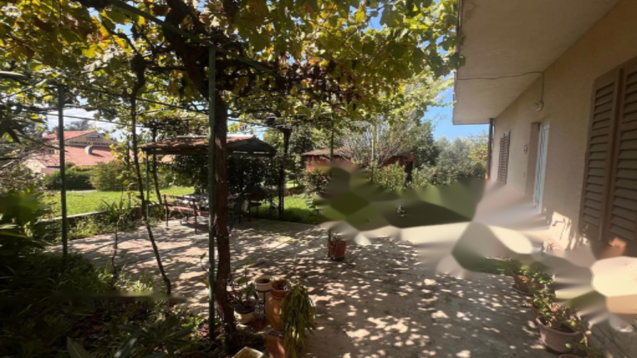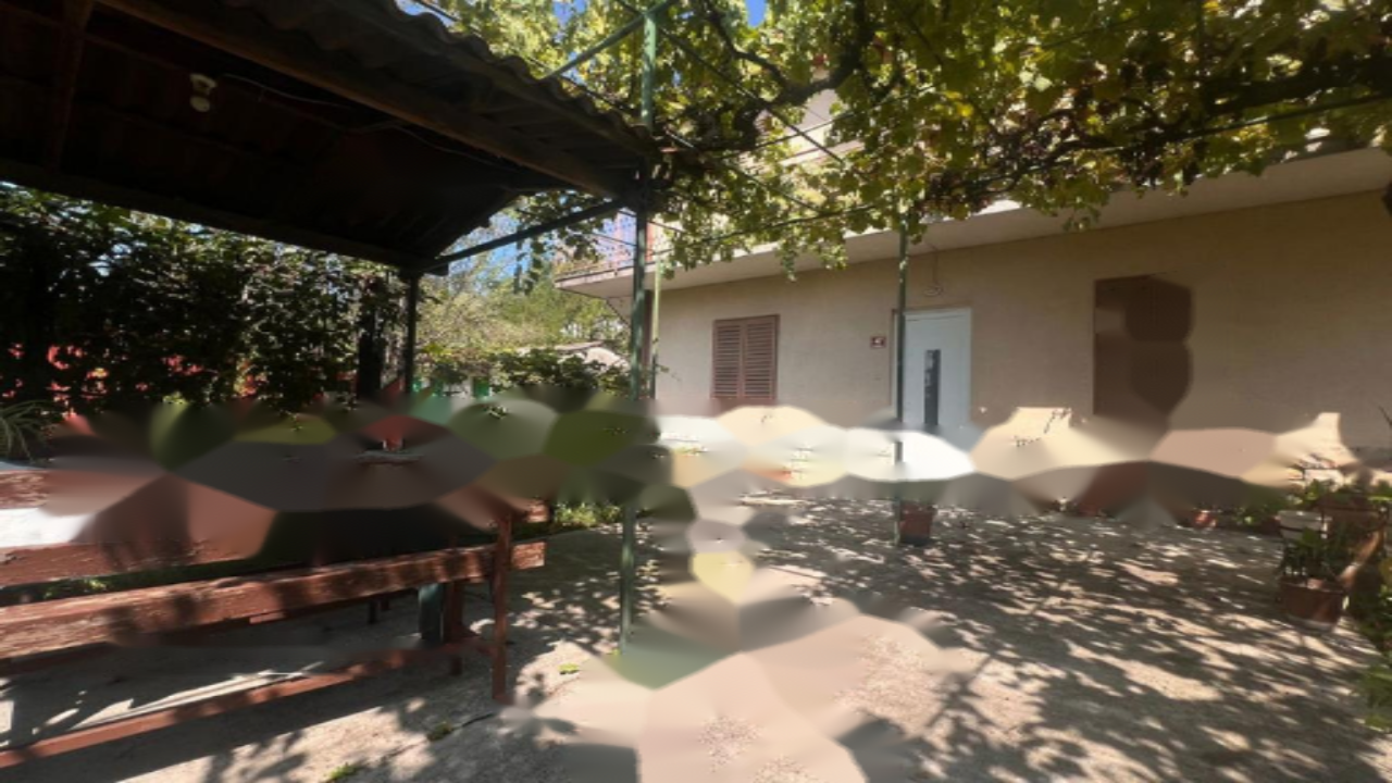 Особенностью недвижимости является наличие двух отдельных полностью оборудованных квартир по 60 м² каждая, что открывает возможность проживания двух семей или аренды. Перед домом находится ухоженная пергола, предоставляющая тень и место для отдыха. Дополнительно на территории имеется вспомогательный объект размером 35 м², ранее использовавшийся как мастерская, кладовая и винный погреб. Рядом с домом расположена гараж на 20 м².