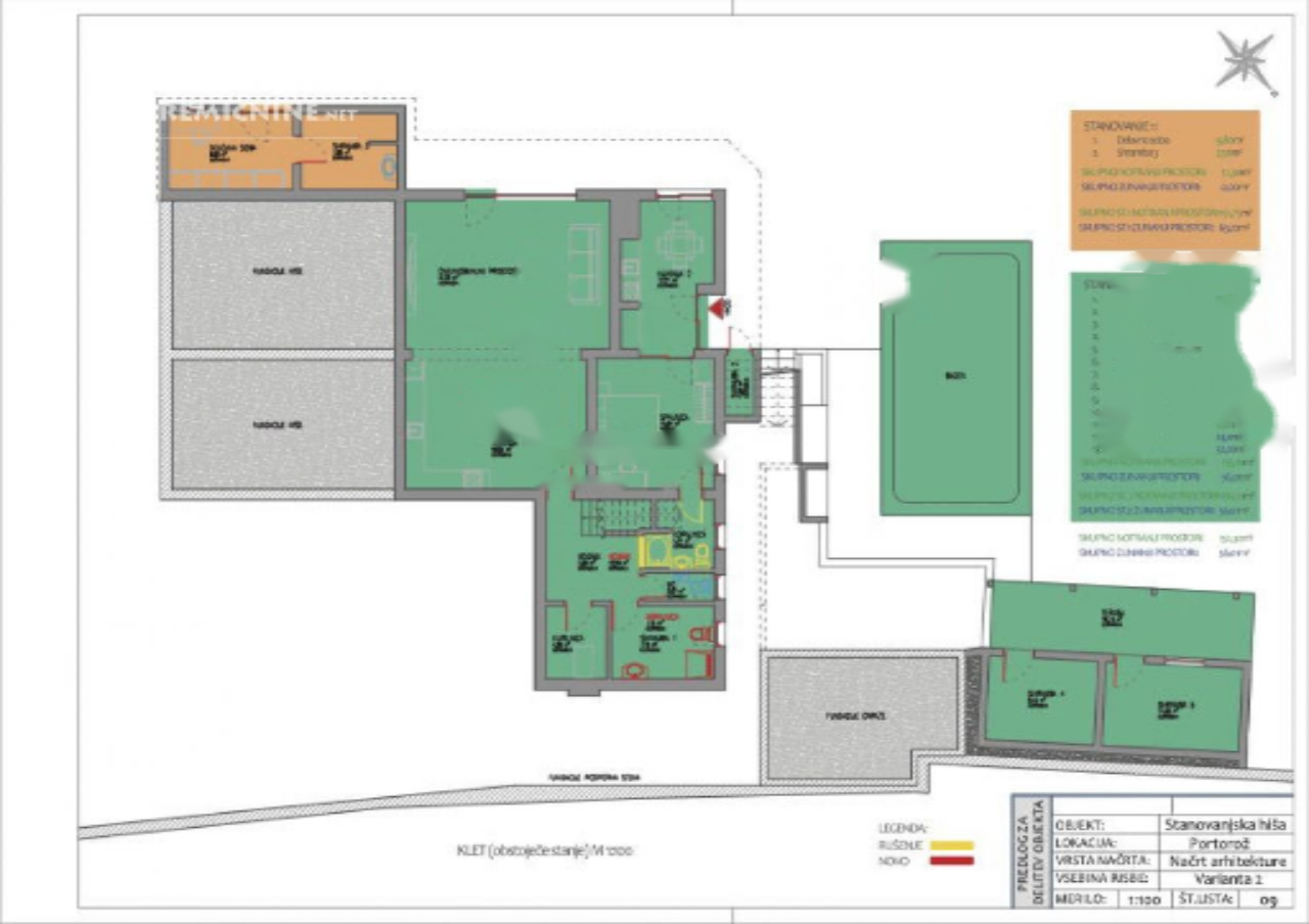 Представляем изысканную виллу в самом сердце Порторожа, идеально подходящую для тех, кто ищет сочетание роскоши, спокойствия и уникального местоположения. Это великолепно обновленный в 1998 году одноэтажный дом с общей площадью 383,2 м², расположен на участке 701 м², предлагает настоящую уединенность.