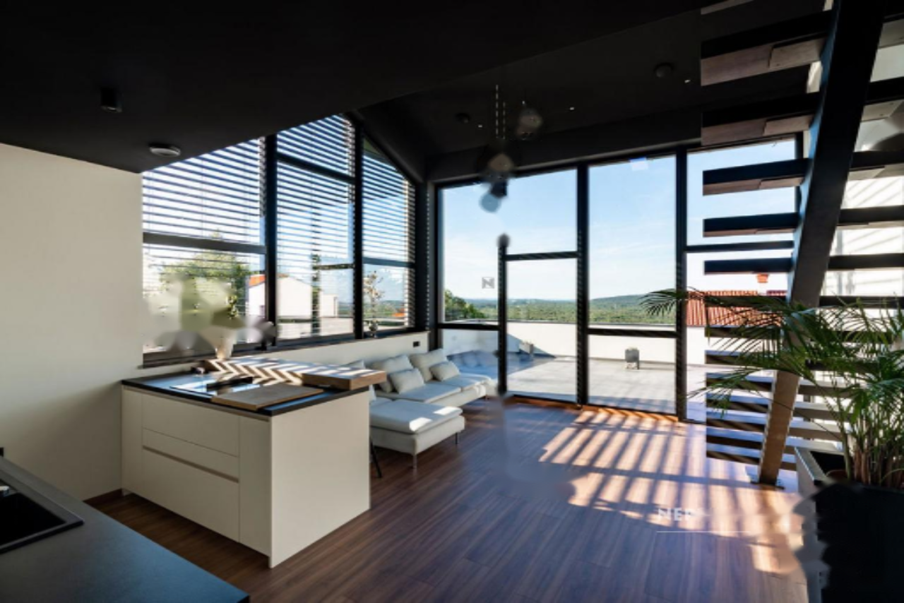 В верхней части дома находится два отдельных блока площадью около 130 м² и 80 м² с возможностью объединения в единое пространство. Широкая терраса (около 140 м²) на этом уровне также с великолепным обзором. Дополнительно есть мощенная площадка для парковки нескольких автомобилей.