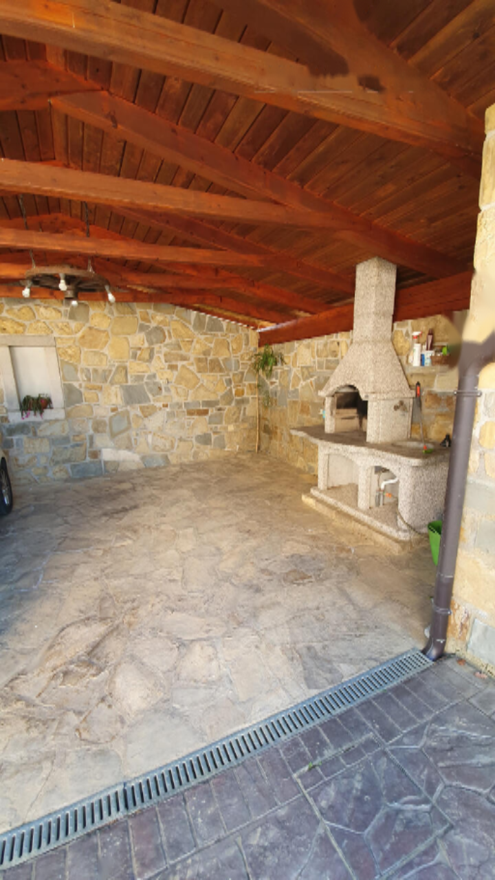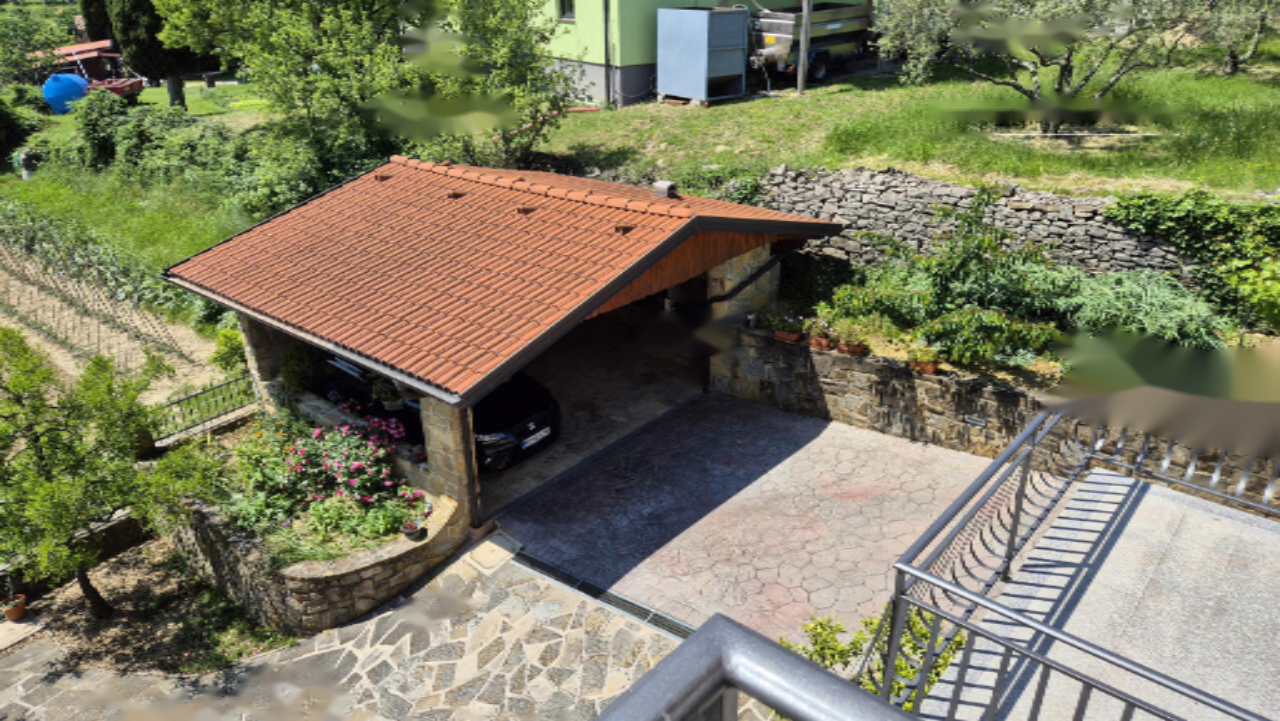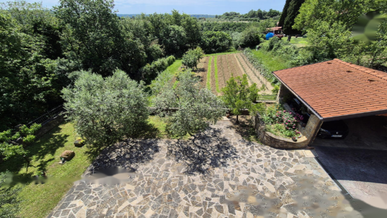 Дом окружен просторным двором площадью 480 м² с внешней кухней, летней террасой, зоной для барбекю и атрибутами домашнего сада, включая оливковые деревья и богатый овощной сад. Домашний уют и близость к природе дополняются возможностью самостоятельно выращивать собственное оливковое масло и свежие овощи.