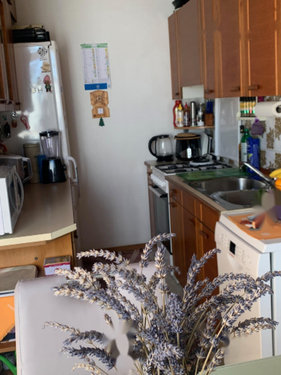 Нижняя квартира нуждается в обновлении и включает: просторную кухню, дневную комнату, две спальни (одна из которых большая), ванную комнату и просторный закрытый балкон.