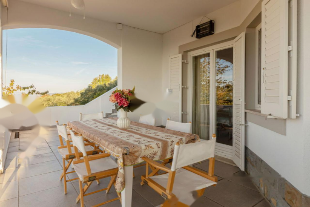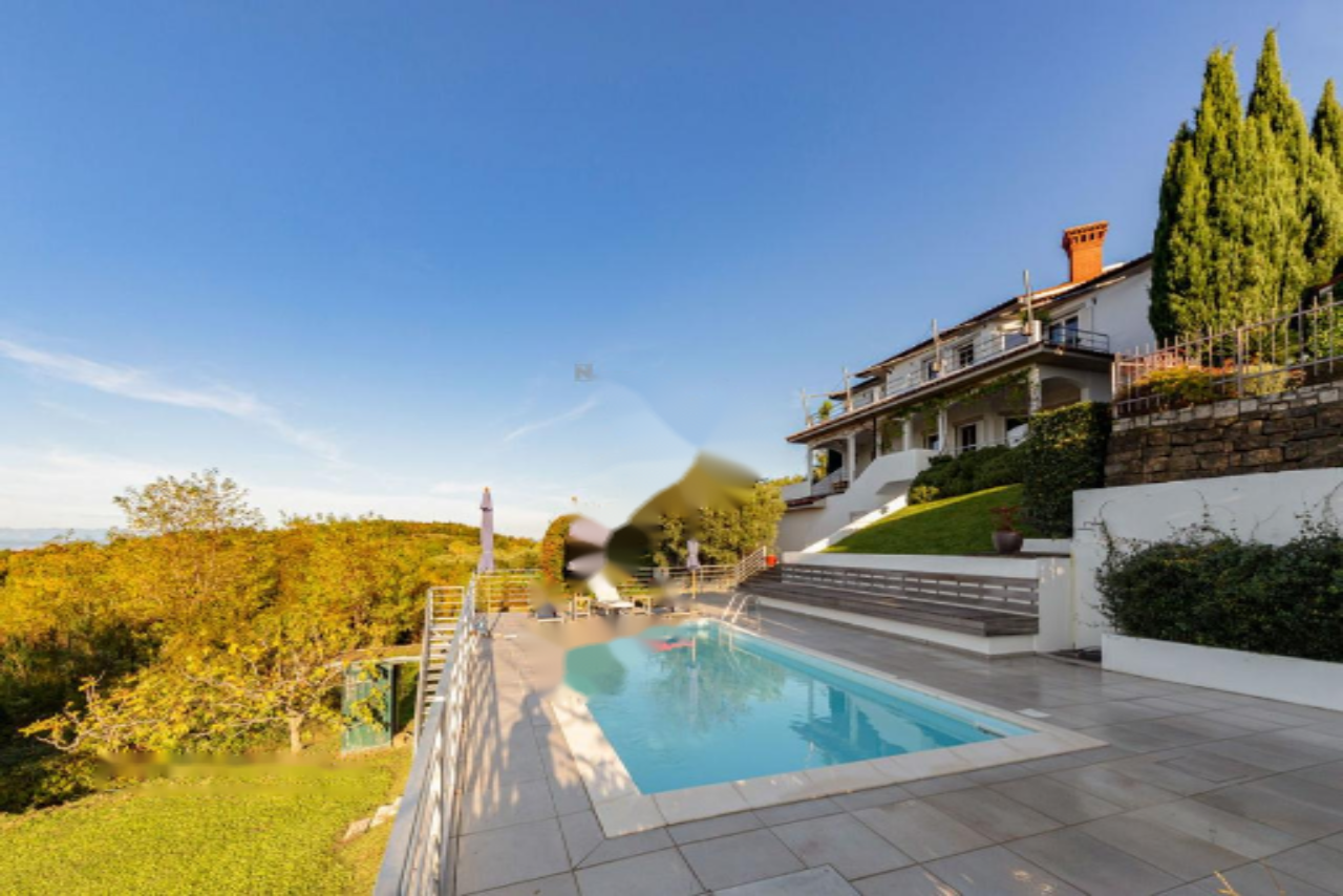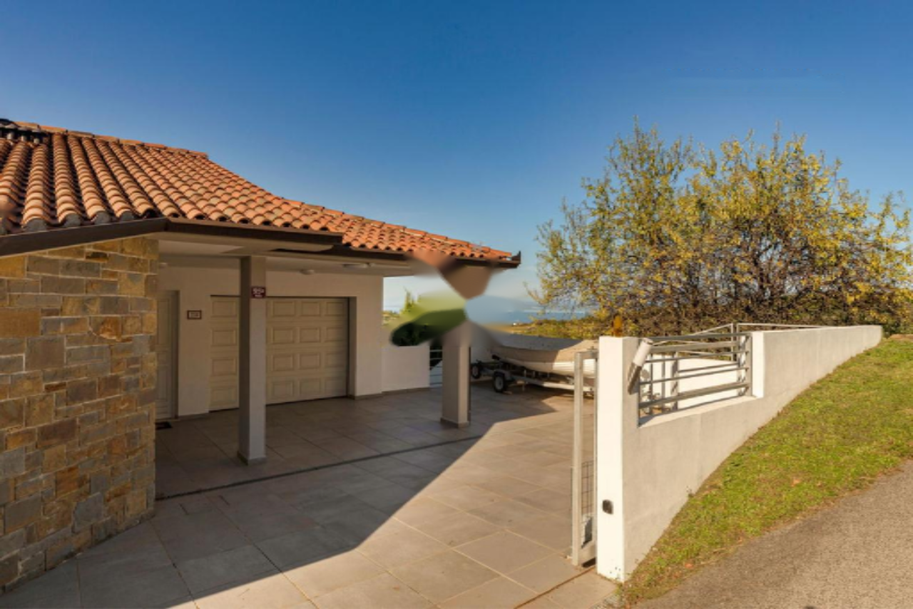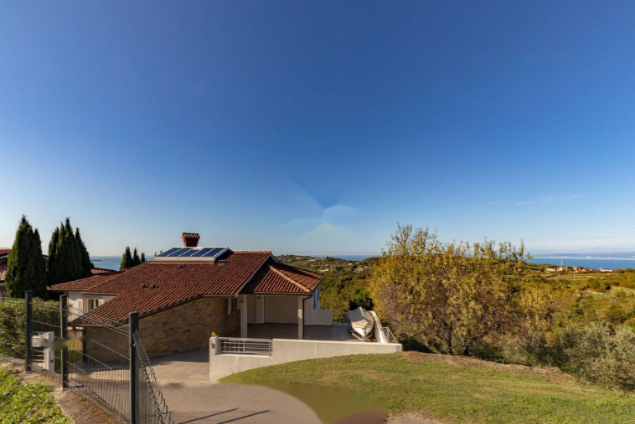 Панорамная терраса протянулась вдоль всей длины дома, предлагая пространство для обеденной зоны на свежем воздухе и лаунж-зону с прекрасными видами на Истру, Градез и Венецию . Нижний этаж включает открытую гостиную зону с кухней и столовой, большую спальню с собственной ванной комнатой, коридор с гардеробом, вторую спальню, дополнительную ванную комнату, спортивный зал (в настоящий момент переоборудован в спальню) с возможностью установки сауны, техническое помещение и небольшую мастерскую, а также крытую террасу с видом, протянувшуюся вдоль всей длины дома.