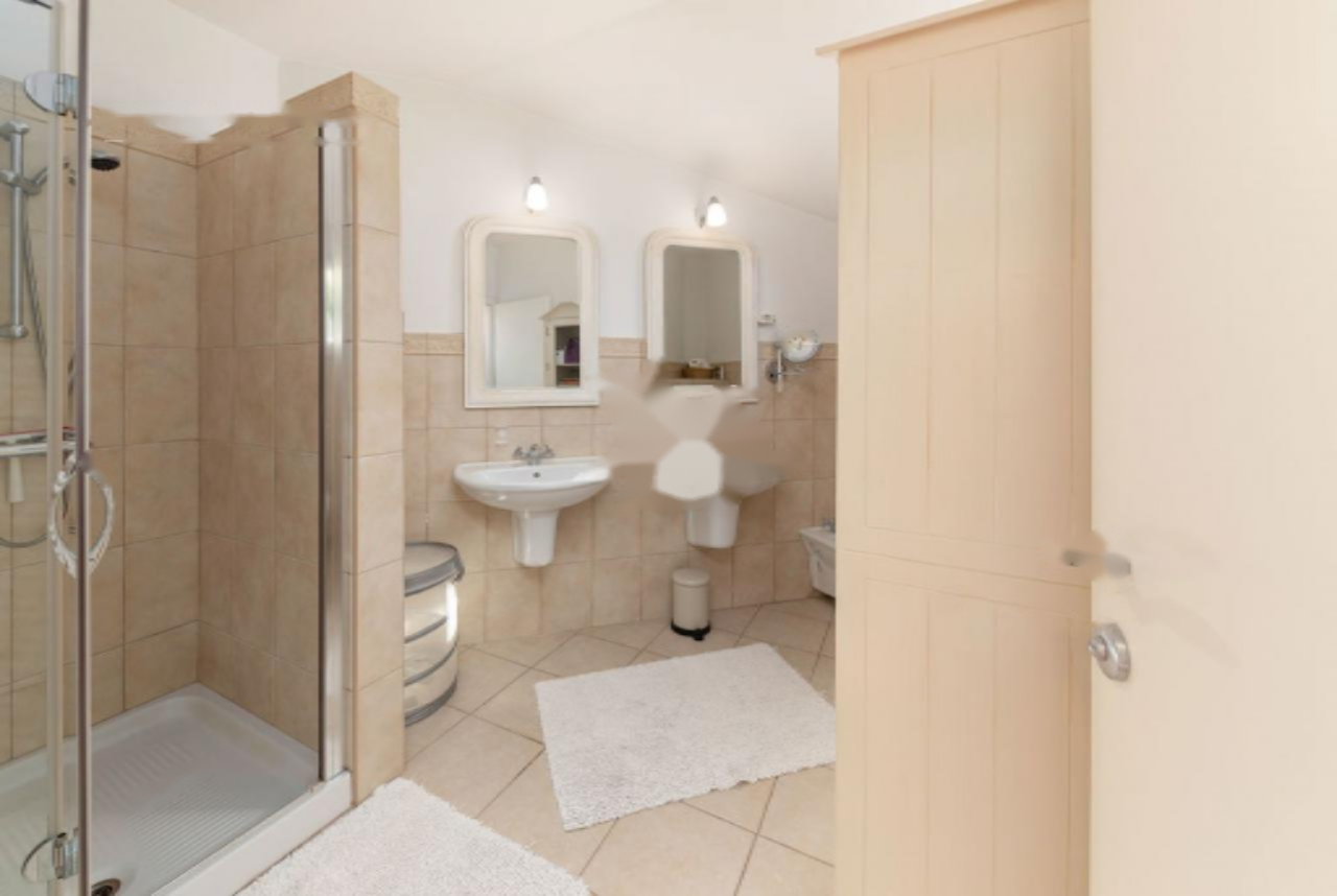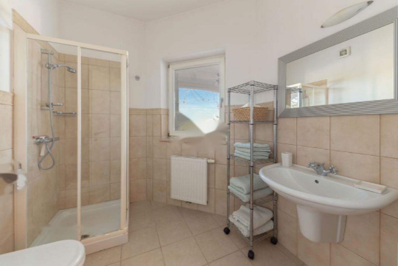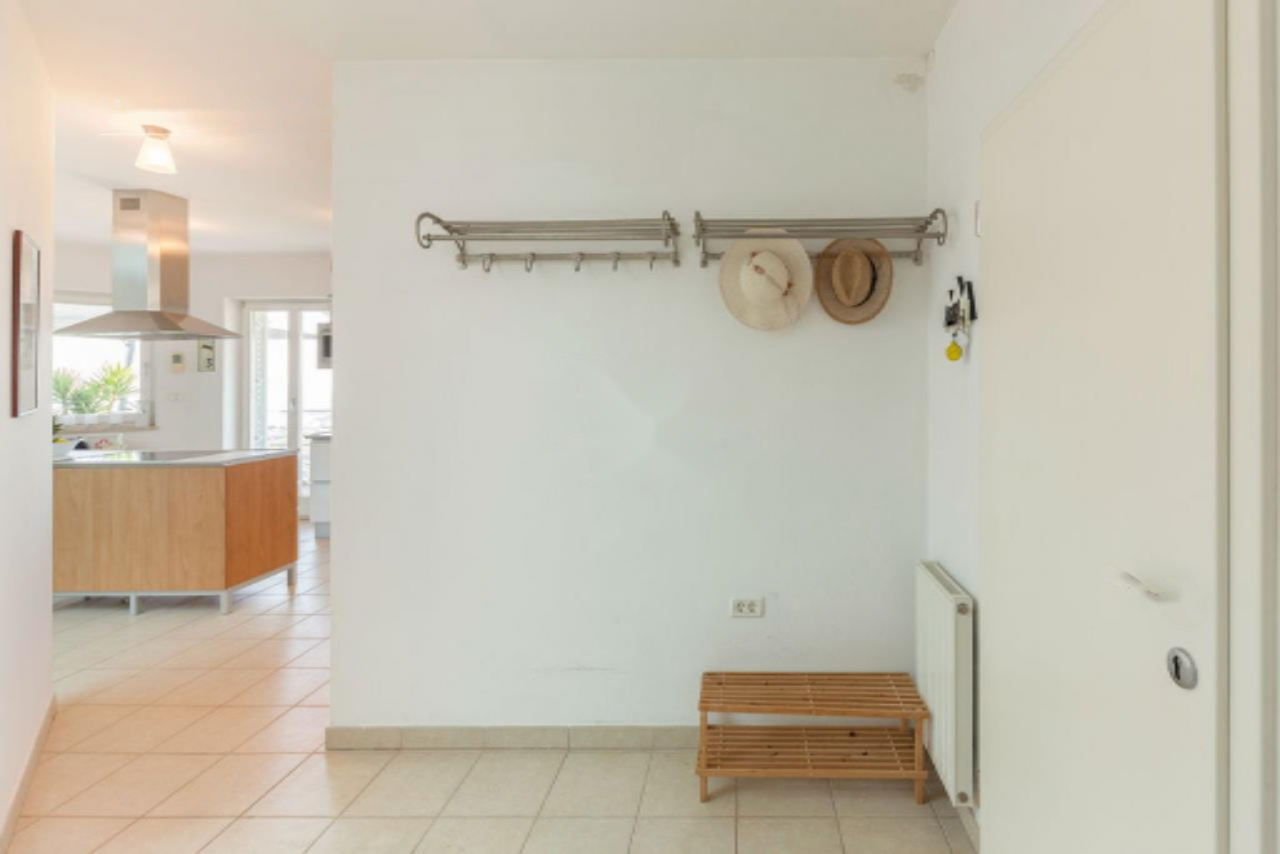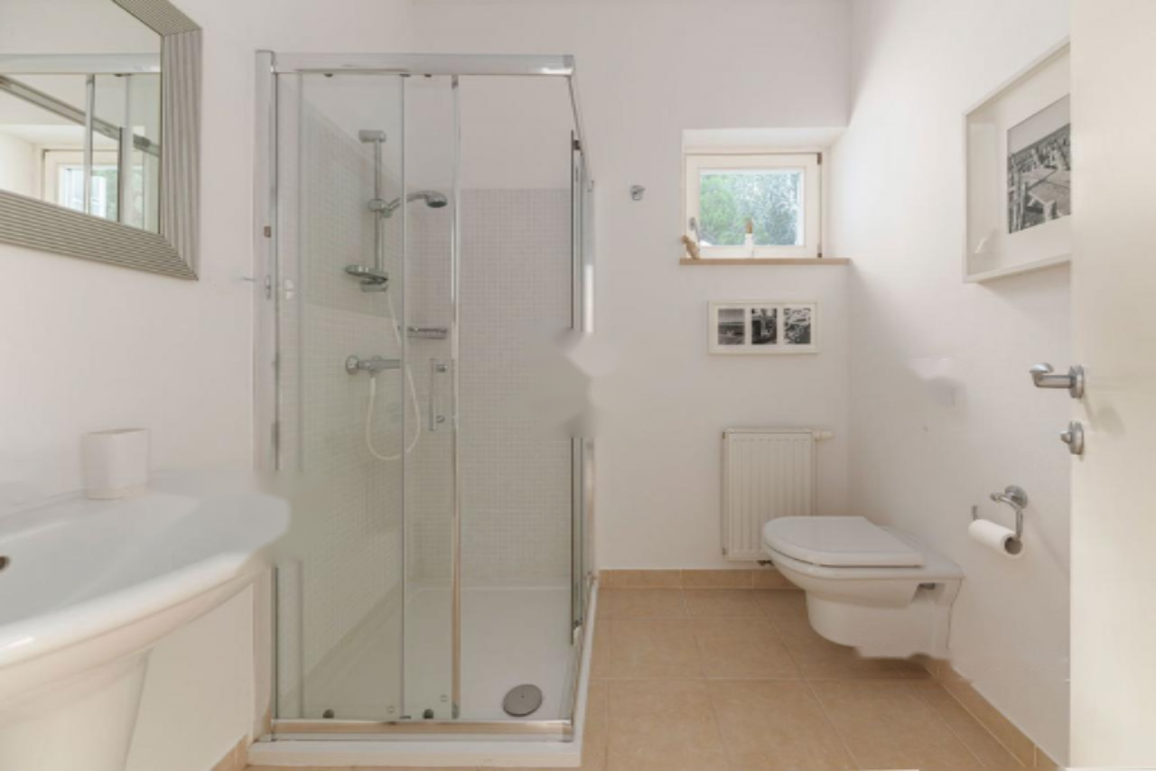 Панорамная терраса протянулась вдоль всей длины дома, предлагая пространство для обеденной зоны на свежем воздухе и лаунж-зону с прекрасными видами на Истру, Градез и Венецию . Нижний этаж включает открытую гостиную зону с кухней и столовой, большую спальню с собственной ванной комнатой, коридор с гардеробом, вторую спальню, дополнительную ванную комнату, спортивный зал (в настоящий момент переоборудован в спальню) с возможностью установки сауны, техническое помещение и небольшую мастерскую, а также крытую террасу с видом, протянувшуюся вдоль всей длины дома.