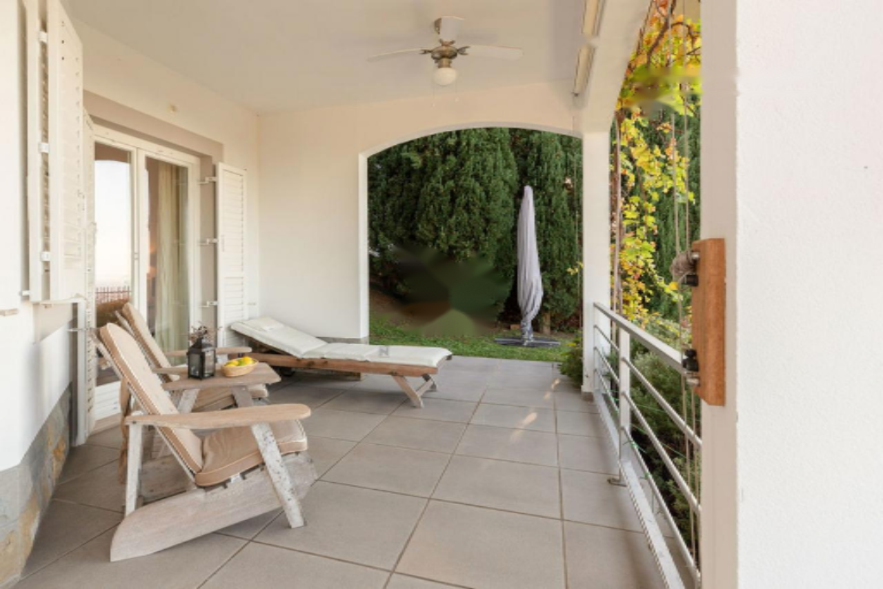 Экстерьер и окружение виллы представлены ухоженной территорией с деревом на террасе в тени на нижней террасе — идеальное место для летних дней. Ступени ведут к большому бассейну 4 x 8 м с зоной для отдыха на солнце. Ещё ниже расположен луг, засаженный фиговыми деревьями и оливами . Вилла отапливается с помощью современной воздушно-водяной тепловой насосной системы, с радиаторным отоплением и тёплым полом в ванных комнатах и на кухне и столовой в верхнем этаже. Гостиная, кабинет и спальня на первом этаже, а также две спальни на нижнем этаже оснащены кондиционерами.
