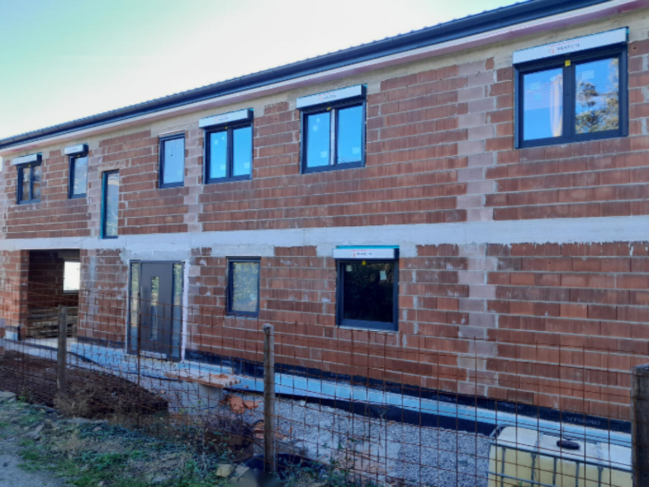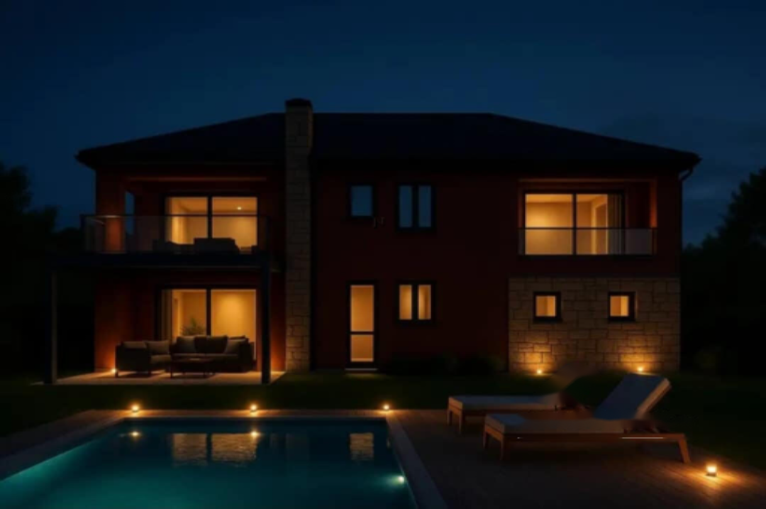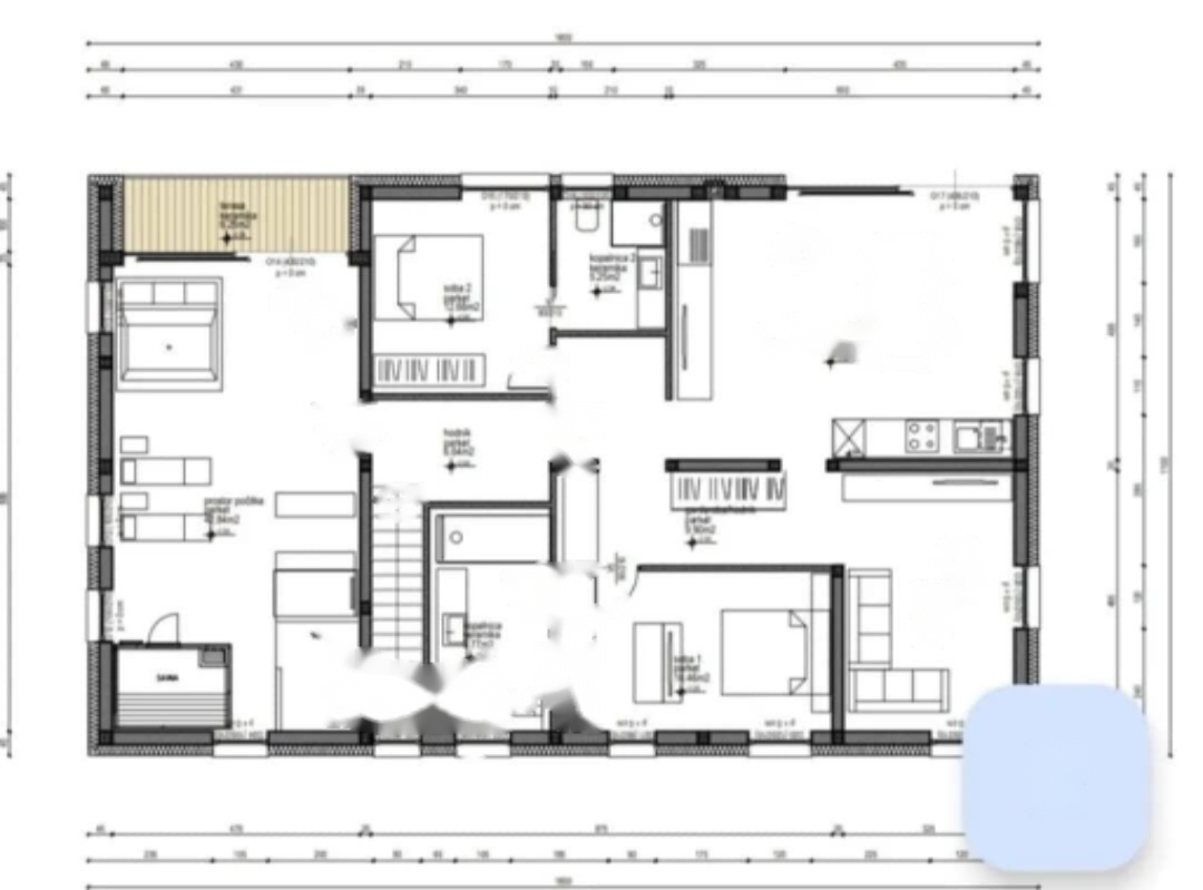 В Сподние Шкофие, на участке площадью 2 400 квадратных метров, рядом с главной дорогой, расположен новый одноэтажный дом, строительство которого будет завершено в 2025 году. Дом площадью 396 квадратных метров на 45% предназначен для жилого использования, а оставшиеся 55% – для коммерческих целей. Дом уже находится на третьем этапе строительства с установленными окнами и дверями, его размеры составляют 18 на 11 метров.