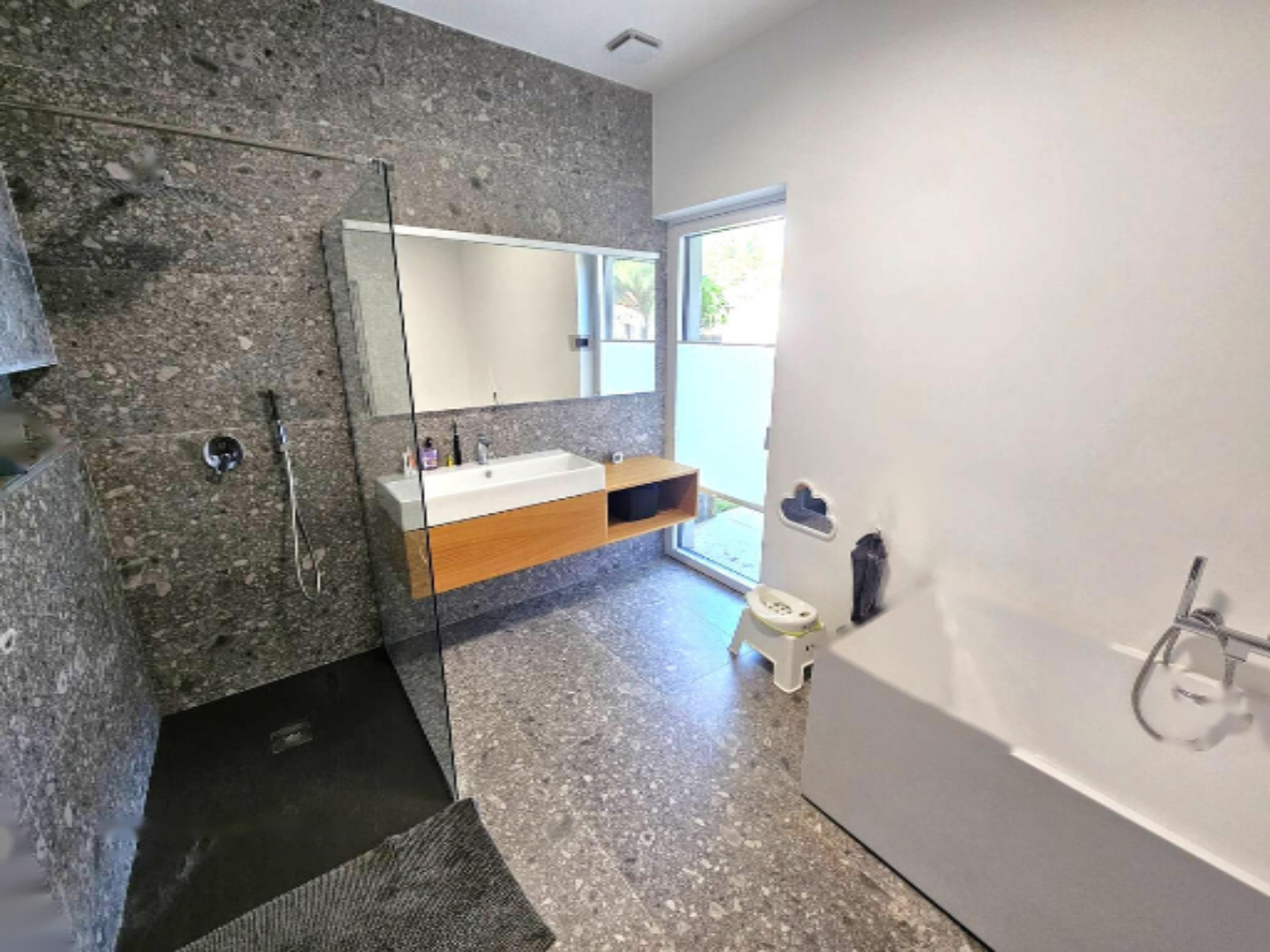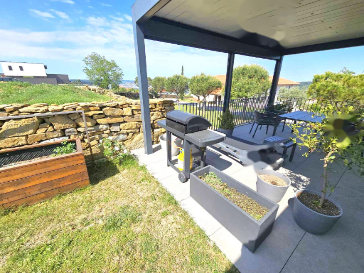 Парковка предлагается как на четыре автомобиля, включая одно парковочное место в гараже. Окружение дома ухоженное и огороженное, что добавляет чувство безопасности. Удобное расположение предоставляет лёгкий доступ к автостраде, Италии и важным объектам инфраструктуры. Дом близко расположен к детскому саду, школе, зонам отдыха и природе, что делает его особенно удобным для семей и пожилых людей.