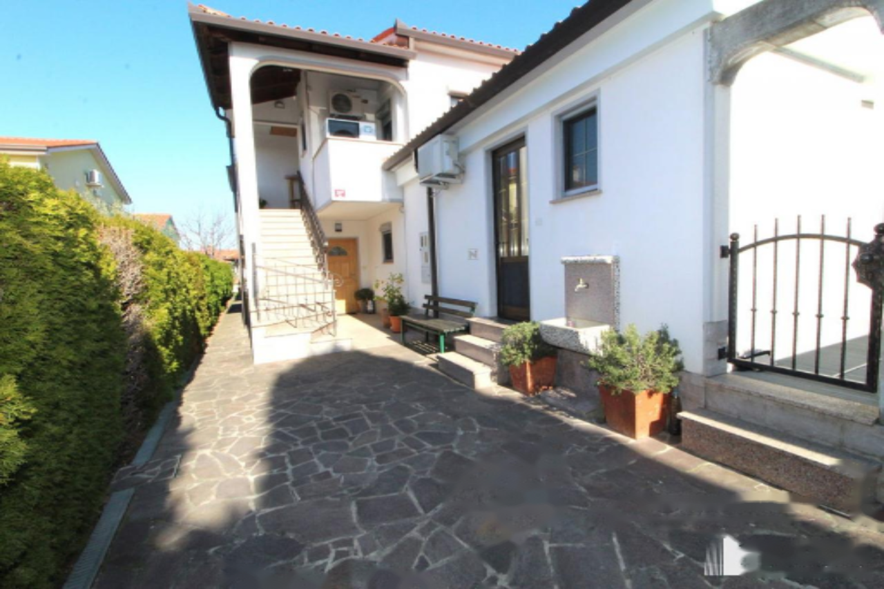На первом этаже расположена современно оборудованная четырёхкомнатная квартира с большой террасой и впечатляющими видами на сад, оливковые деревья и море. Второй этаж повторяет планировку нижнего с тремя спальнями, ванной, просторным холлом и террасой, предлагающей уникальные панорамные виды на Изолу и Триест в сторону гор. В пристройке на первом этаже находится студия. Подвал площадью 56 м² предоставляет дополнительные возможности для хранения или организации помещений по вашему усмотрению.