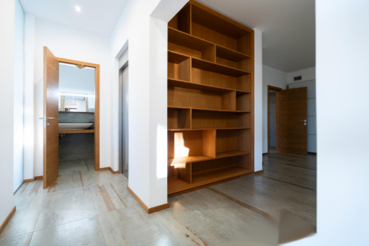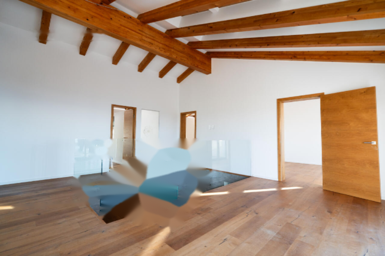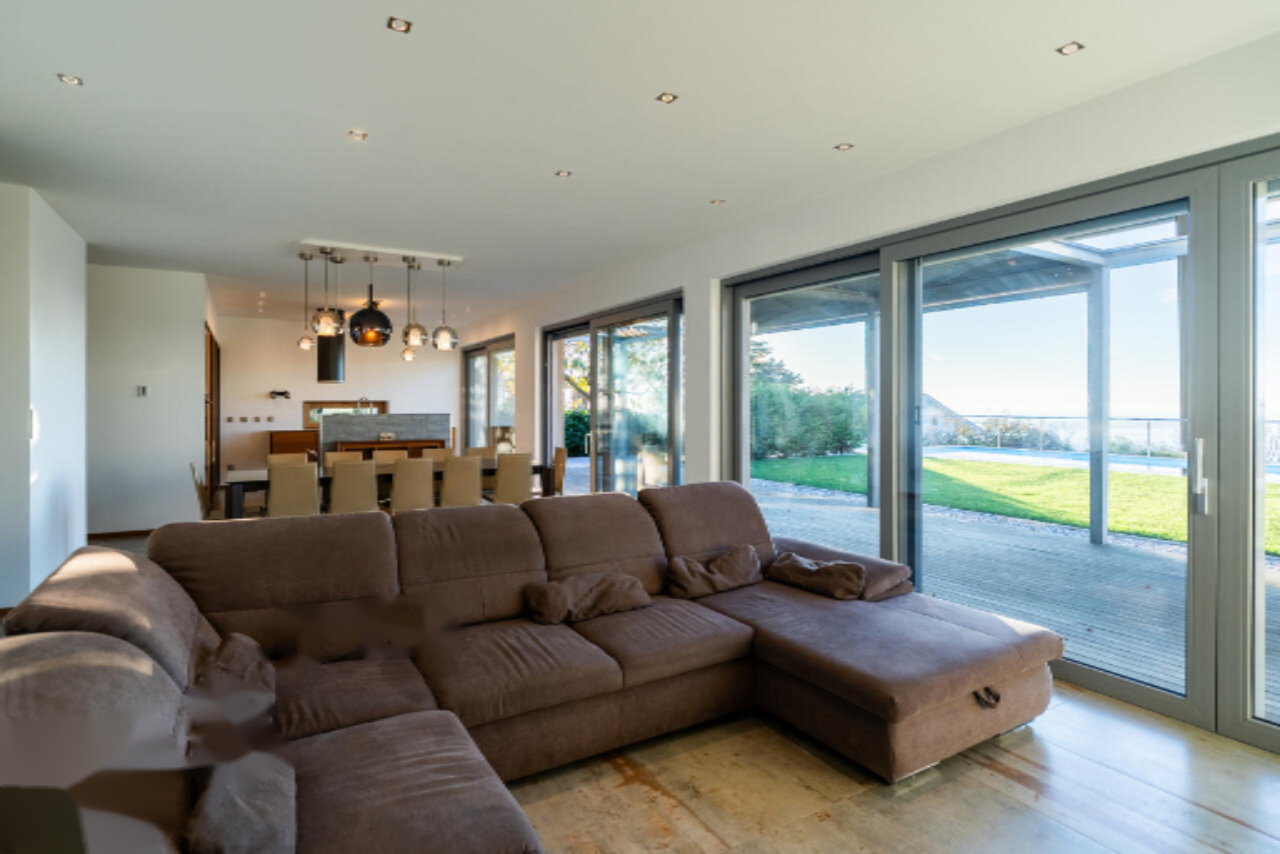 Вилла включает три этажа: первый этаж, два верхних этажа и мансарда. На первом этаже расположена просторная гаражная зона, несколько подсобных помещений и лифт, обеспечивающий удобное перемещение между этажами. Яркий и просторный жилой зал на втором этаже соединён с современной кухней и столовой, а также с уютной гостиной — идеальным местом для семейных и дружеских встреч. Дополнительные удобства включают ванную комнату, туалет, атрий, гардеробную, рабочий кабинет и внутренний камин .