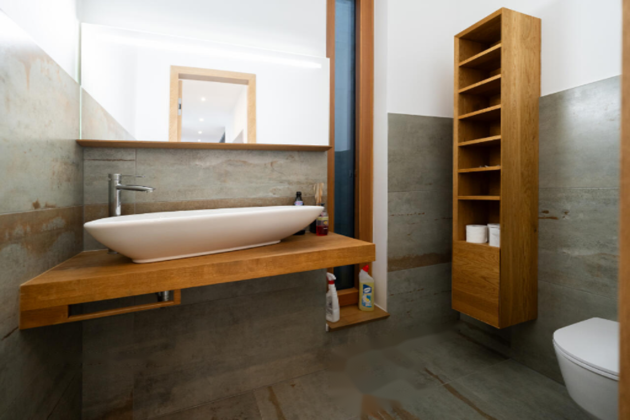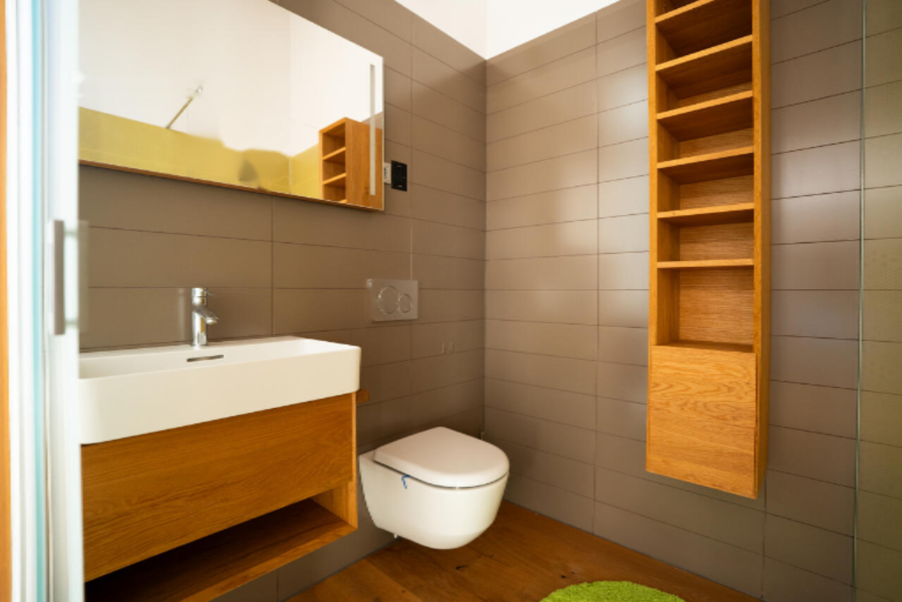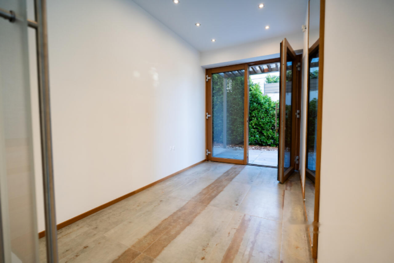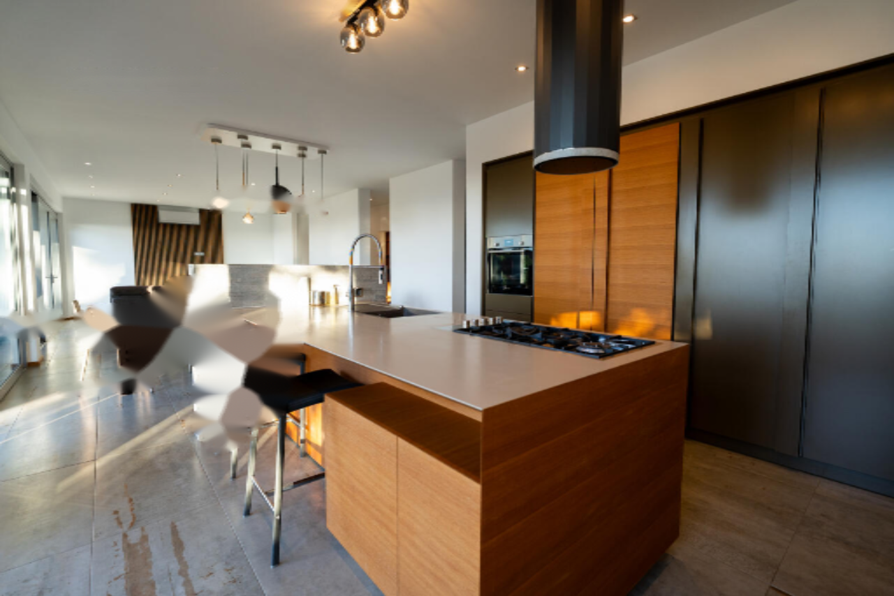 Вилла включает три этажа: первый этаж, два верхних этажа и мансарда. На первом этаже расположена просторная гаражная зона, несколько подсобных помещений и лифт, обеспечивающий удобное перемещение между этажами. Яркий и просторный жилой зал на втором этаже соединён с современной кухней и столовой, а также с уютной гостиной — идеальным местом для семейных и дружеских встреч. Дополнительные удобства включают ванную комнату, туалет, атрий, гардеробную, рабочий кабинет и внутренний камин .