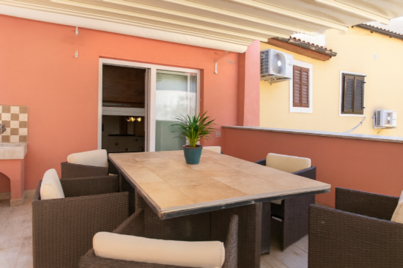 Терасса, оборудованная столом, навесом и подключениями для воды и электричества, является настоящей жемчужиной дома, позволяя наслаждаться теплыми средиземноморскими вечерами.
