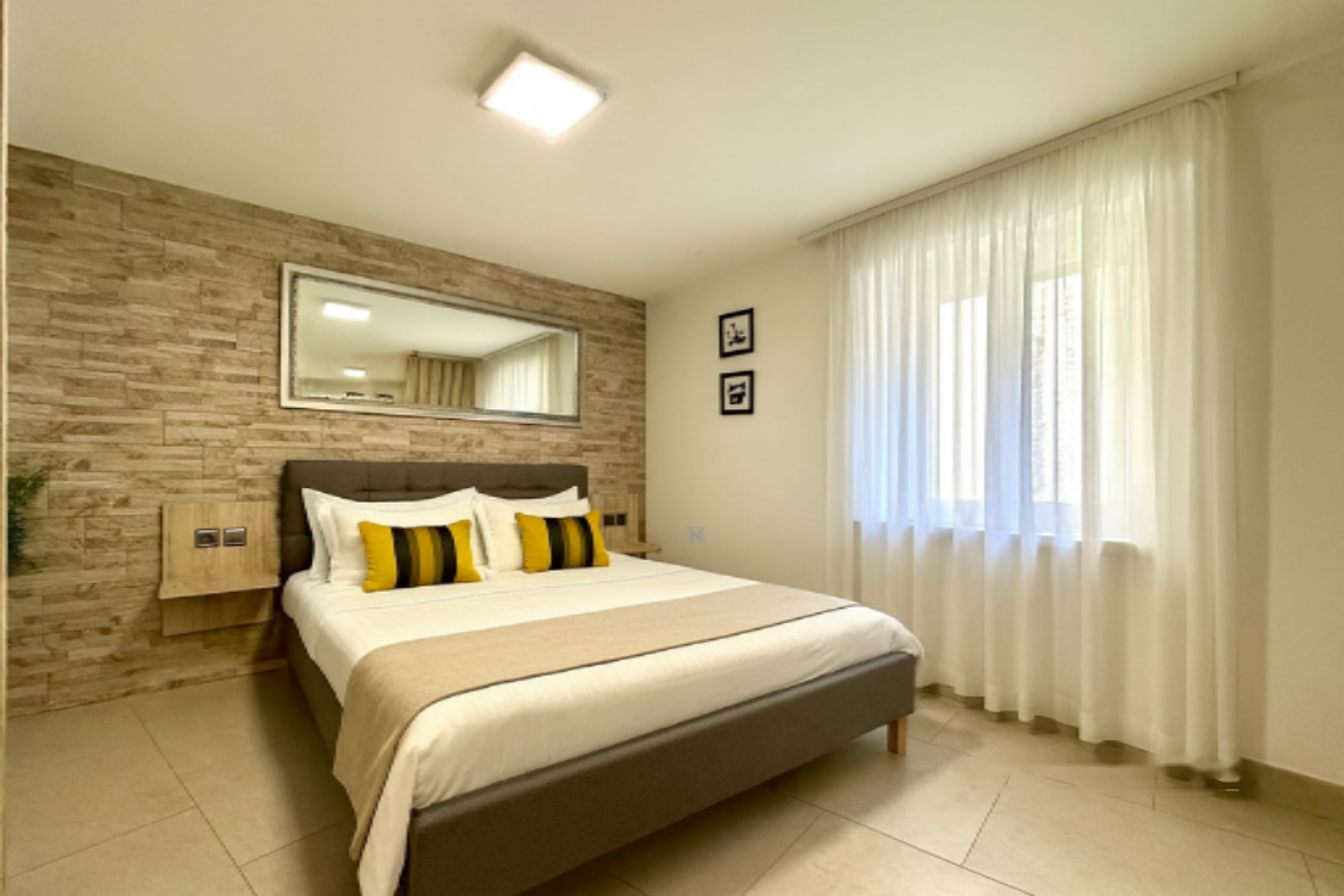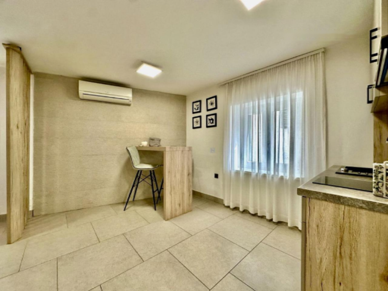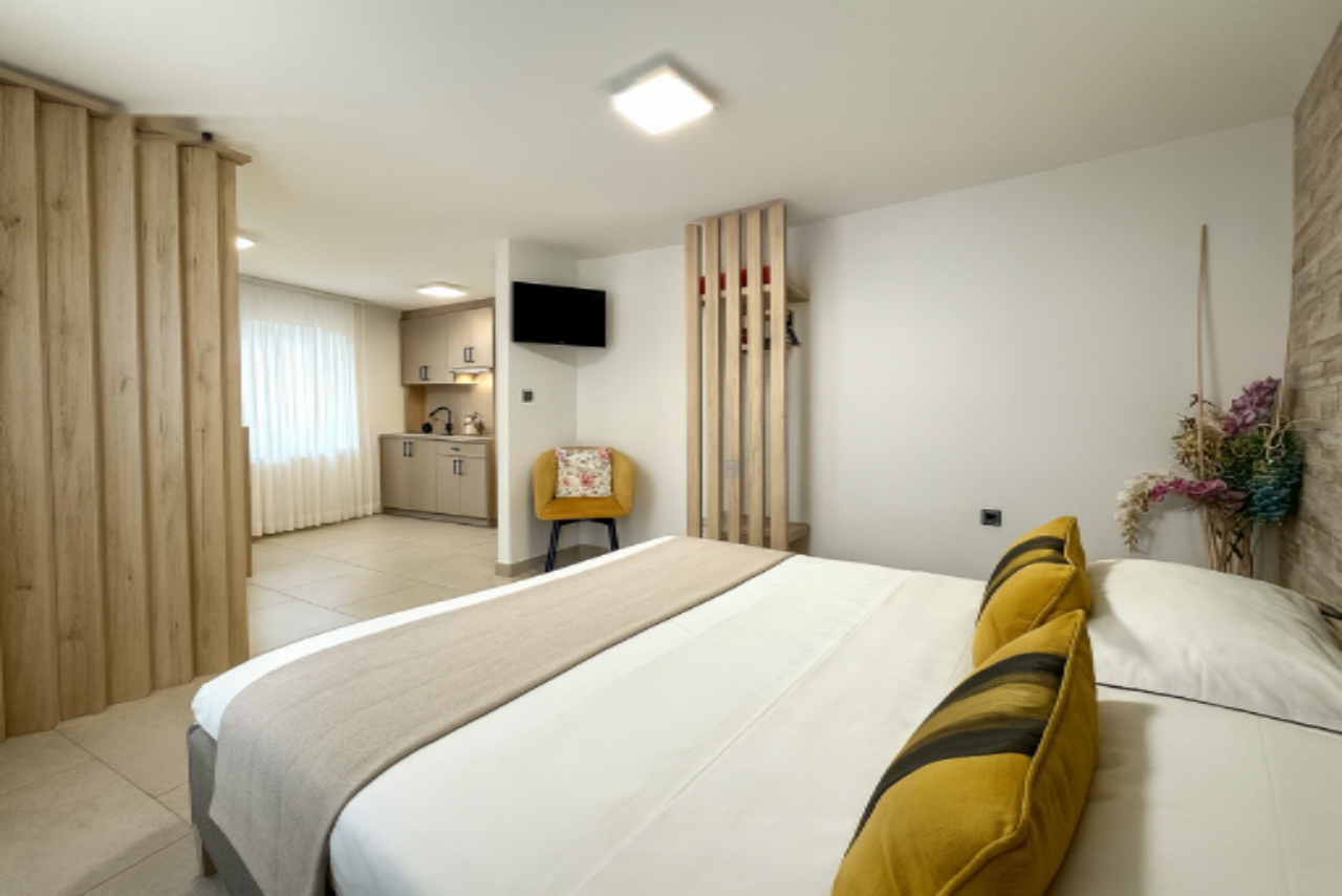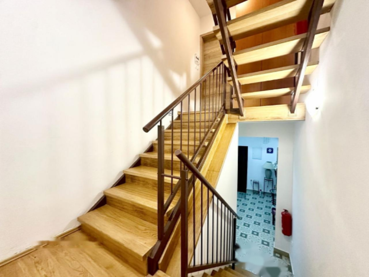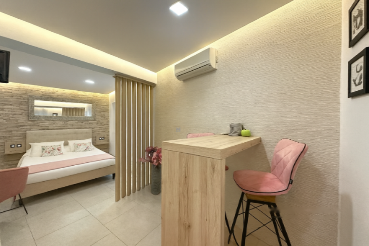 Дом включает: первый этаж, второй этаж, третий этаж и мансарду. На каждом этаже расположен отдельный апартамент, а мансарда предлагает уютную террасу и небольшое помещение для хранения. Три светлых апартамента, каждый площадью около 25 м², содержат спальную зону, кухню с обеденной зоной и ванную комнату. Два окна в каждом апартаменте обеспечивают обилие естественного света.