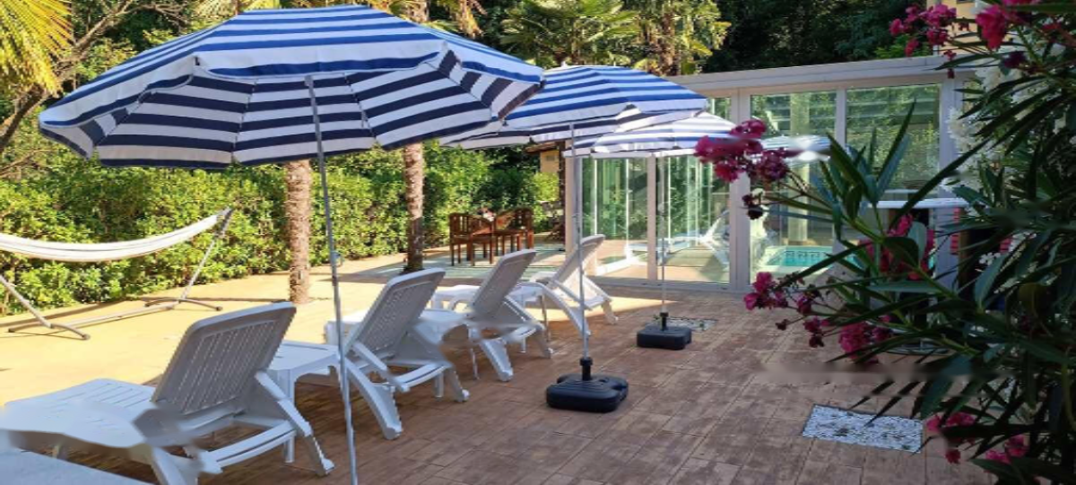 Значительной особенностью объекта является просторный велнес-центр с крытым бассейном, зоной для отдыха, баром, турецкой баней, маленьким бассейном, душем и туалетом. Большая терраса с шезлонгами, зонтиками, стульями, гамаком и столовой зоной создает ощущение частного курорта. ️