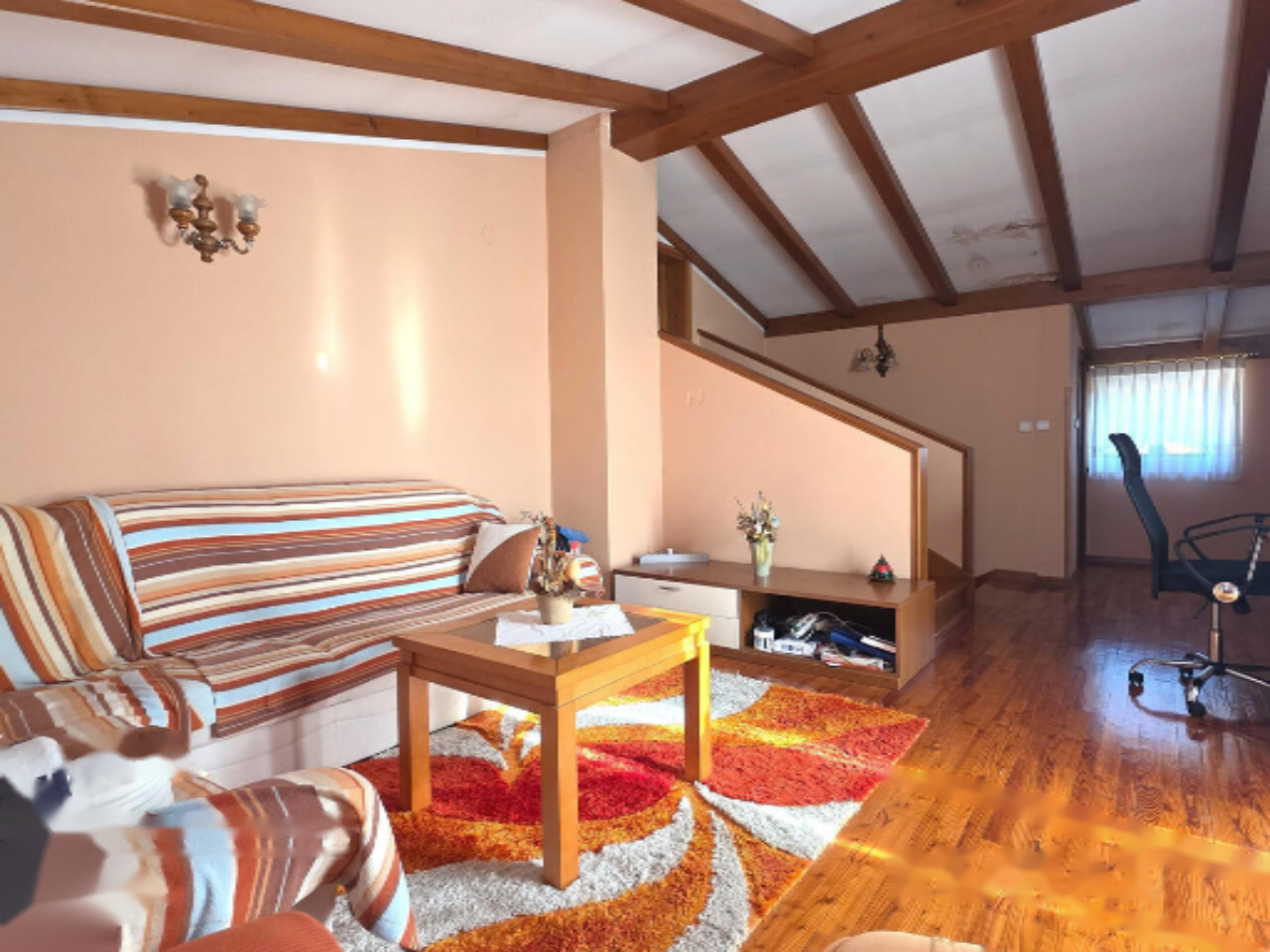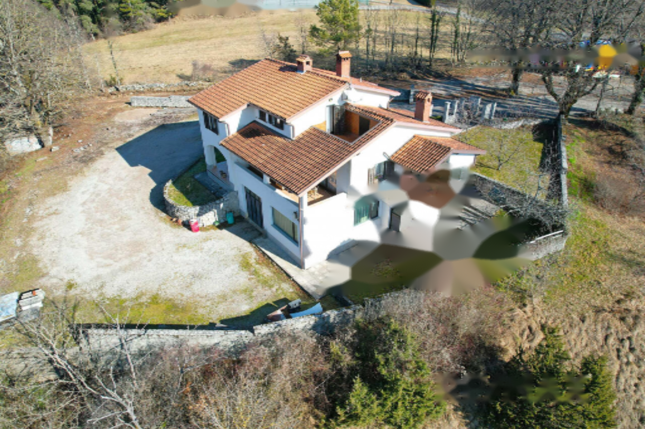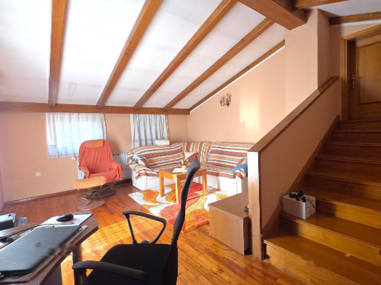 Дом предлагает великолепный вид на окружающую природу. На первом этаже находятся основная жилая зона с просторным холлом, отдельным туалетом и частично отделенной кухней. Столовая соединена с гостиной и выходит на террасу. Интерьер оснащен массивной мебелью, выполненной на заказ.
