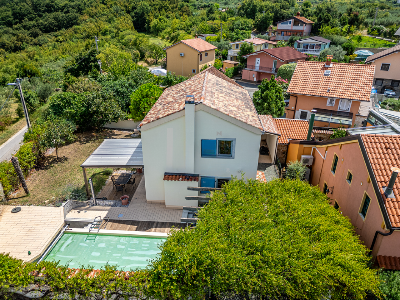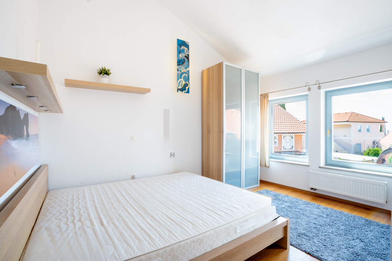 Дом площадью 180 м² предлагает полную приватность и захватывающий вид на море. На участке размером 443 м² в вашем распоряжении имеется ухоженный двор, просторная терраса и свежий бассейн с видом на Адриатику.