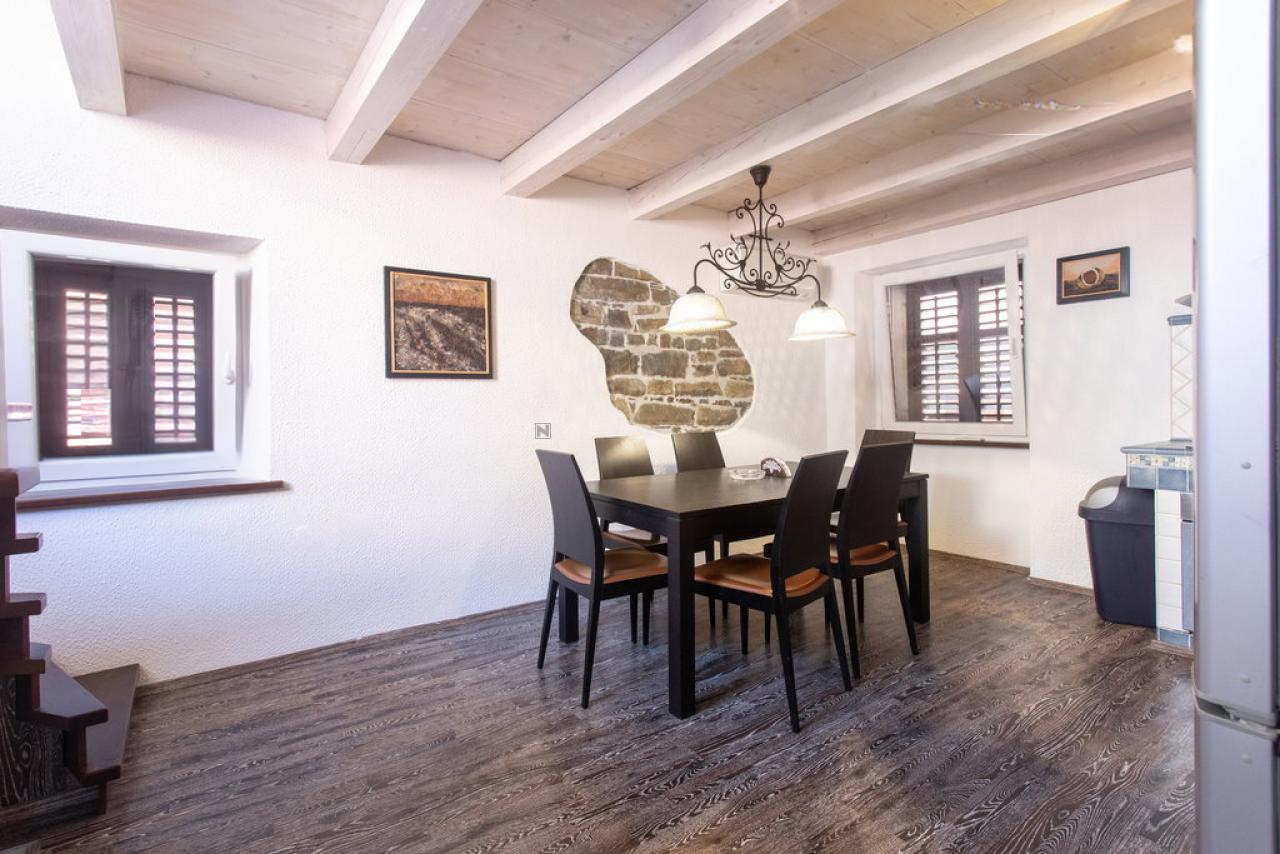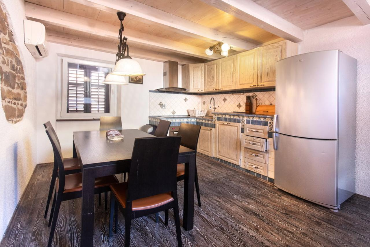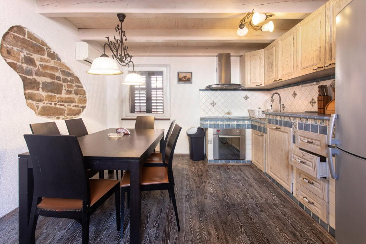Дом продается полностью меблированным с тщательно подобранной антикварной мебелью и массивными элементами, которые гармонируют с архитектурой Пирана, добавляя ощущение аутентичности и уюта. В индивидуально изготовленной кухне использован качественный массив дерева, что подчеркивает уникальность интерьера.
