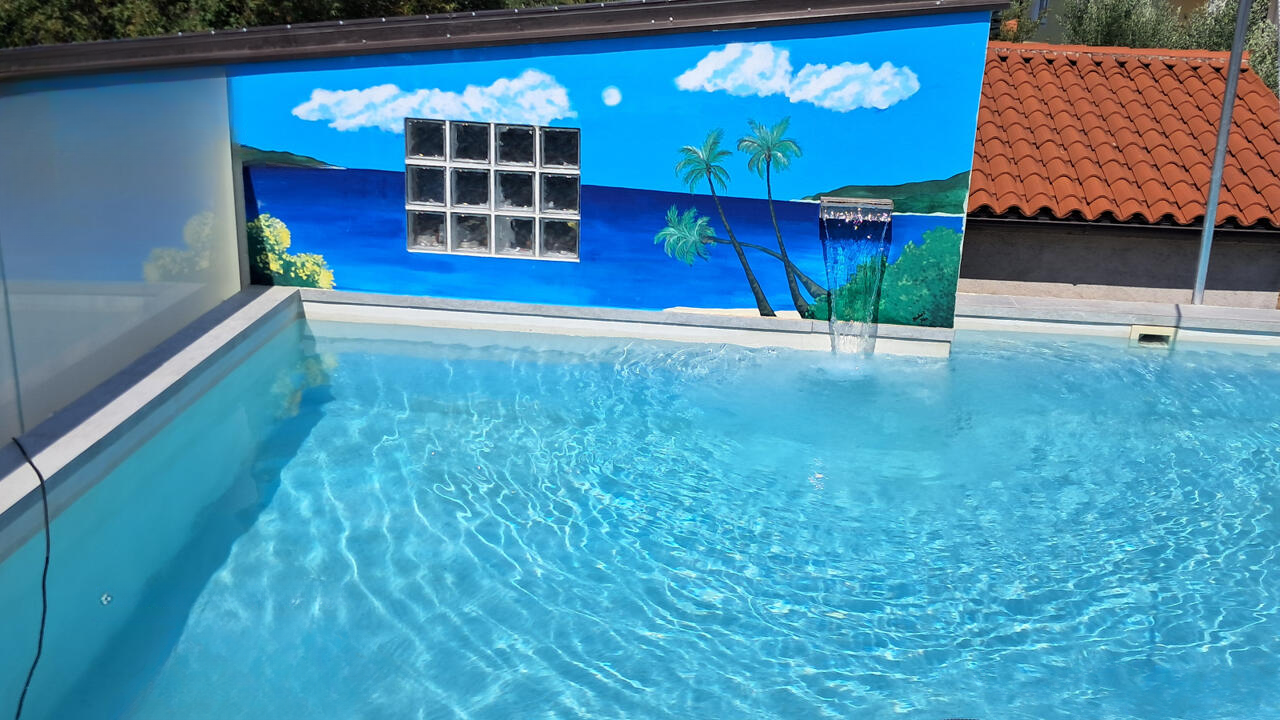 Дом предлагает просторную террасу площадью около 55 м² для отдыха и общения, а также бассейн объемом 48 м³ с машинным отделением и хозяйственным помещением (6 м²) для хранения инвентаря. Есть гараж на два автомобиля с площадью 40 м² и автоматическими воротами, а также внешняя парковка на три автомобиля на собственном участке. ⚙️
