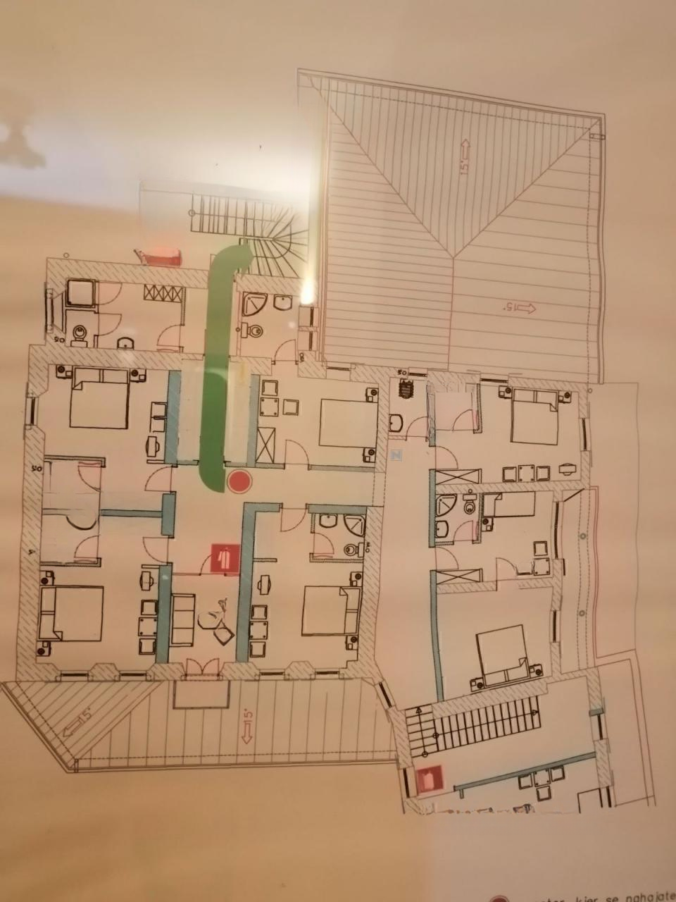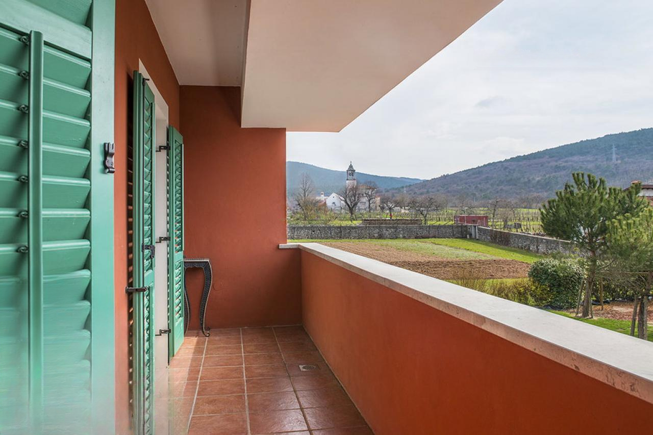 Общая жилая площадь включает 7 просторных комнат, каждая из которых имеет собственные санитарные узлы и меблирована в рустикальном стиле с высокой добавленной стоимостью. Из каждого номера есть выход на балкон, с которого открывается вид на живописный ландшафт Краса. В доме также установлена система кондиционирования.