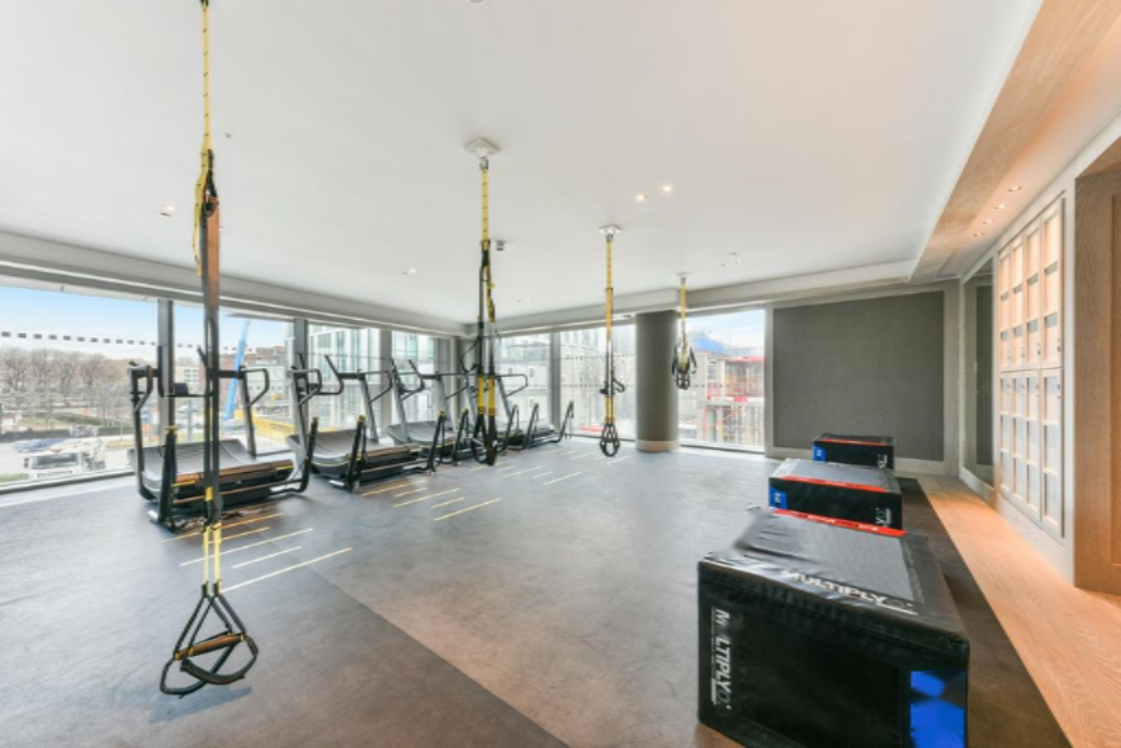 Жители получат полный доступ ко всем удобствам Embassy Gardens, включая современный тренажерный зал, частный роскошный кинотеатр, крытый плавательный бассейн, плавательный джакузи и частный лаунж с кухней, большим телевизором и бильярдным столом.